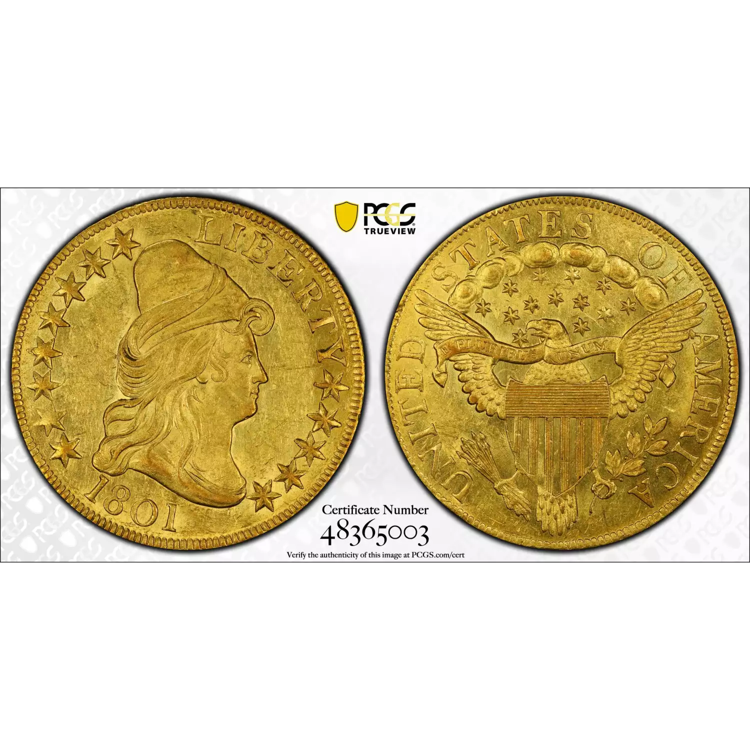 1801 Draped Bust Gold Eagles to Right PCGS MS-62 BD-2