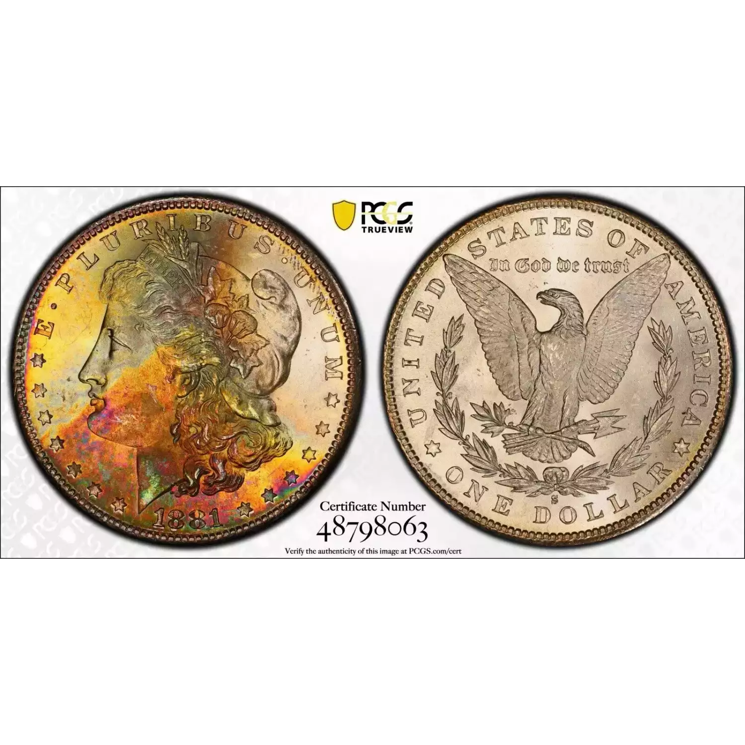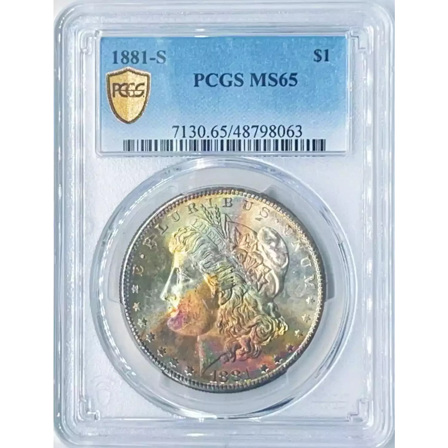 1881-S $1 PCGS MS65 Rainbow Toned Morgan Silver Dollar Rainbow Toning