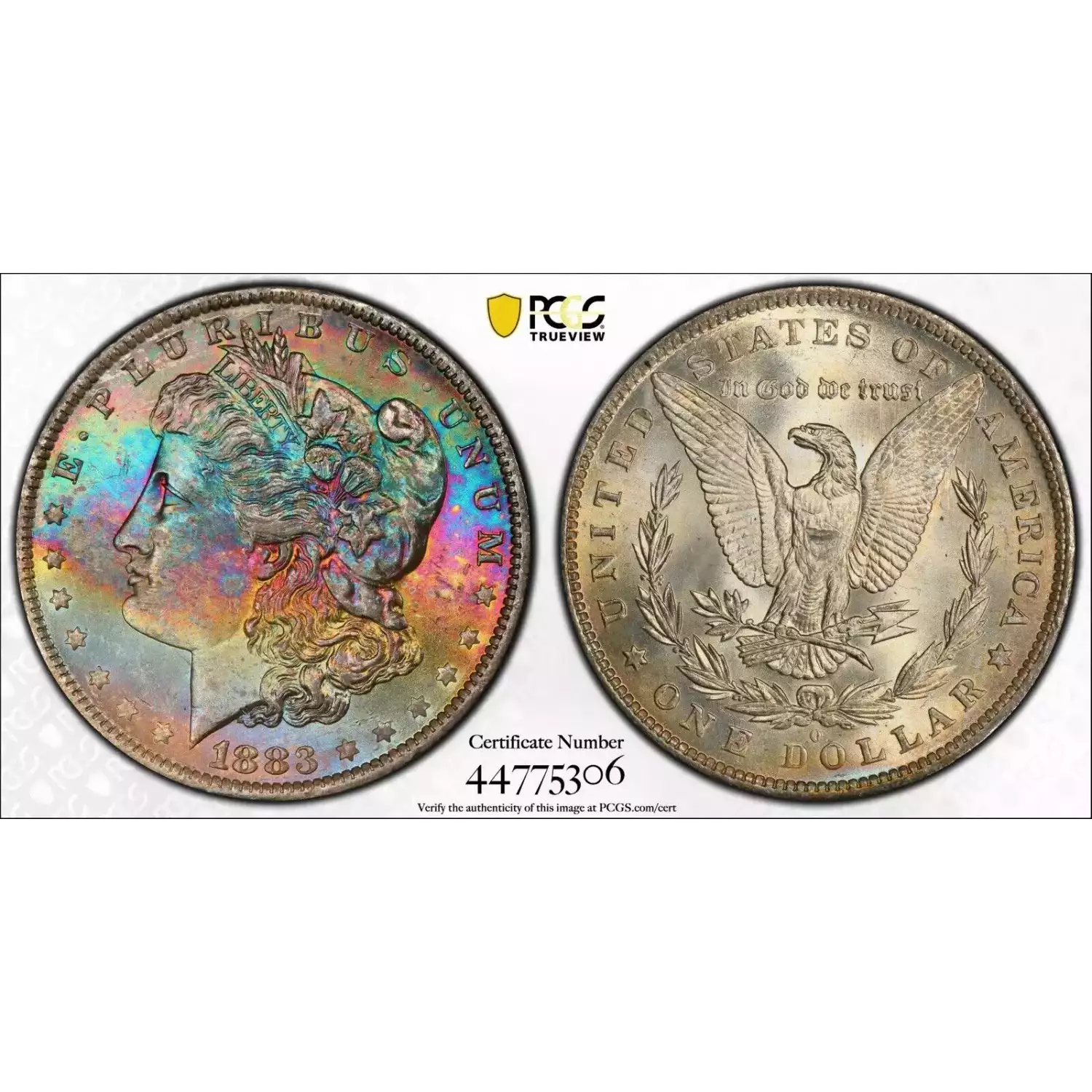 1883-O $1 PCGS MS64 Rainbow Toned Morgan Silver Dollar Rainbow Toning
