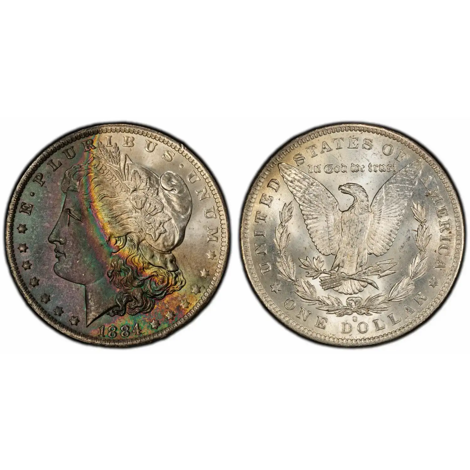 1884-O $1 PCGS MS64 Rainbow Toned Morgan Silver Dollar 56825515