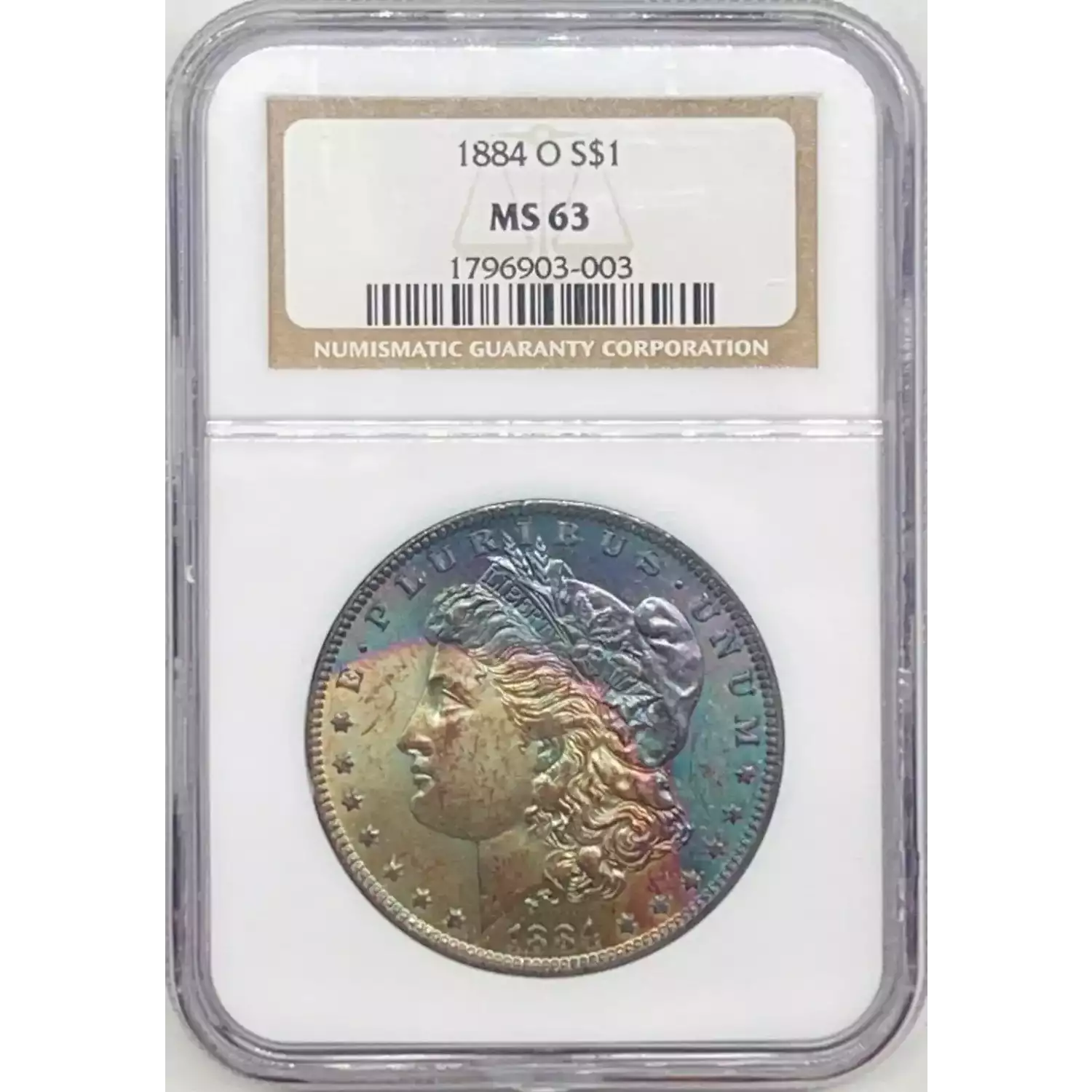 1884-O $1 NGC MS64 Rainbow Toned Morgan Silver Dollar
