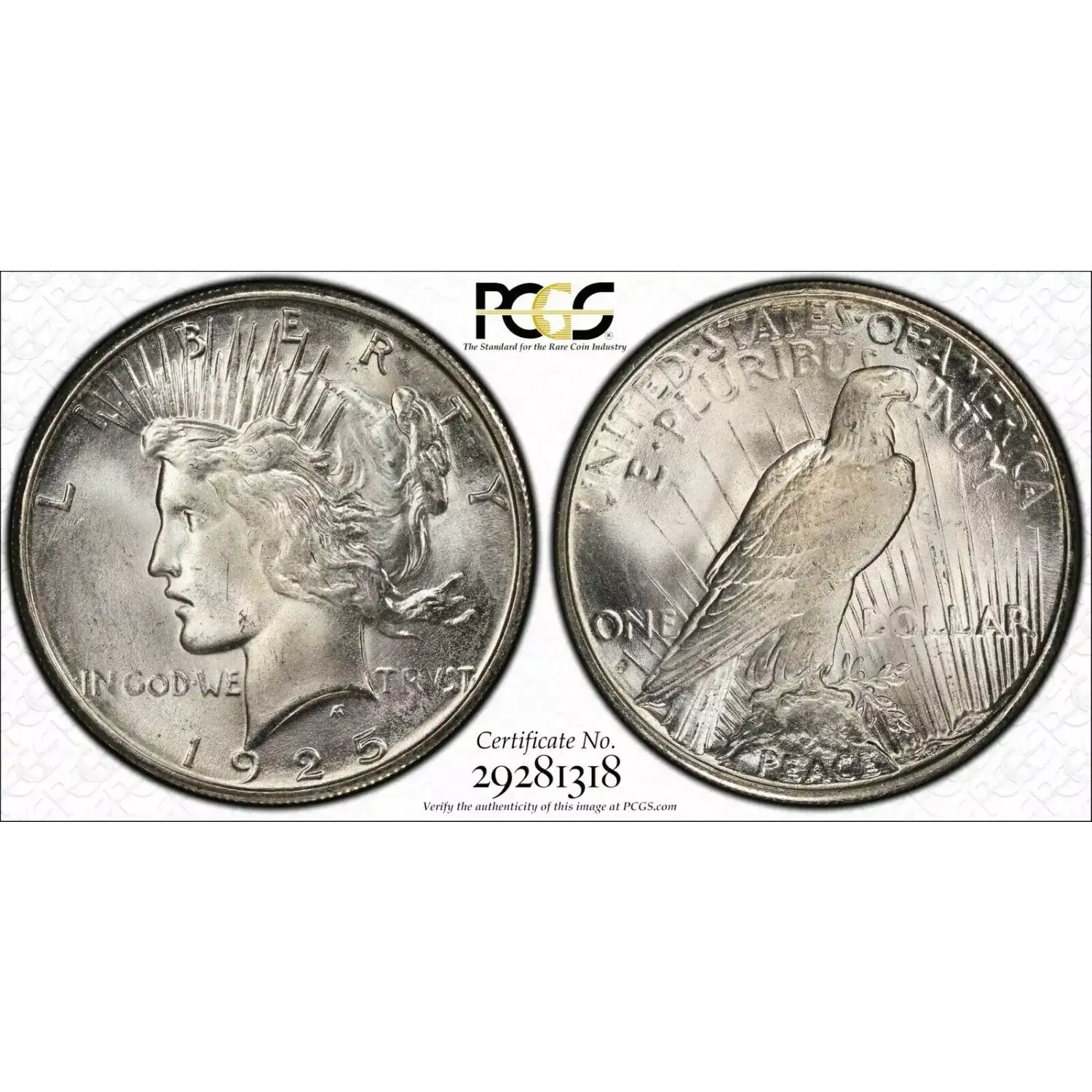 1925-S $1 PCGS MS64+ CAC Peace Silver Dollar