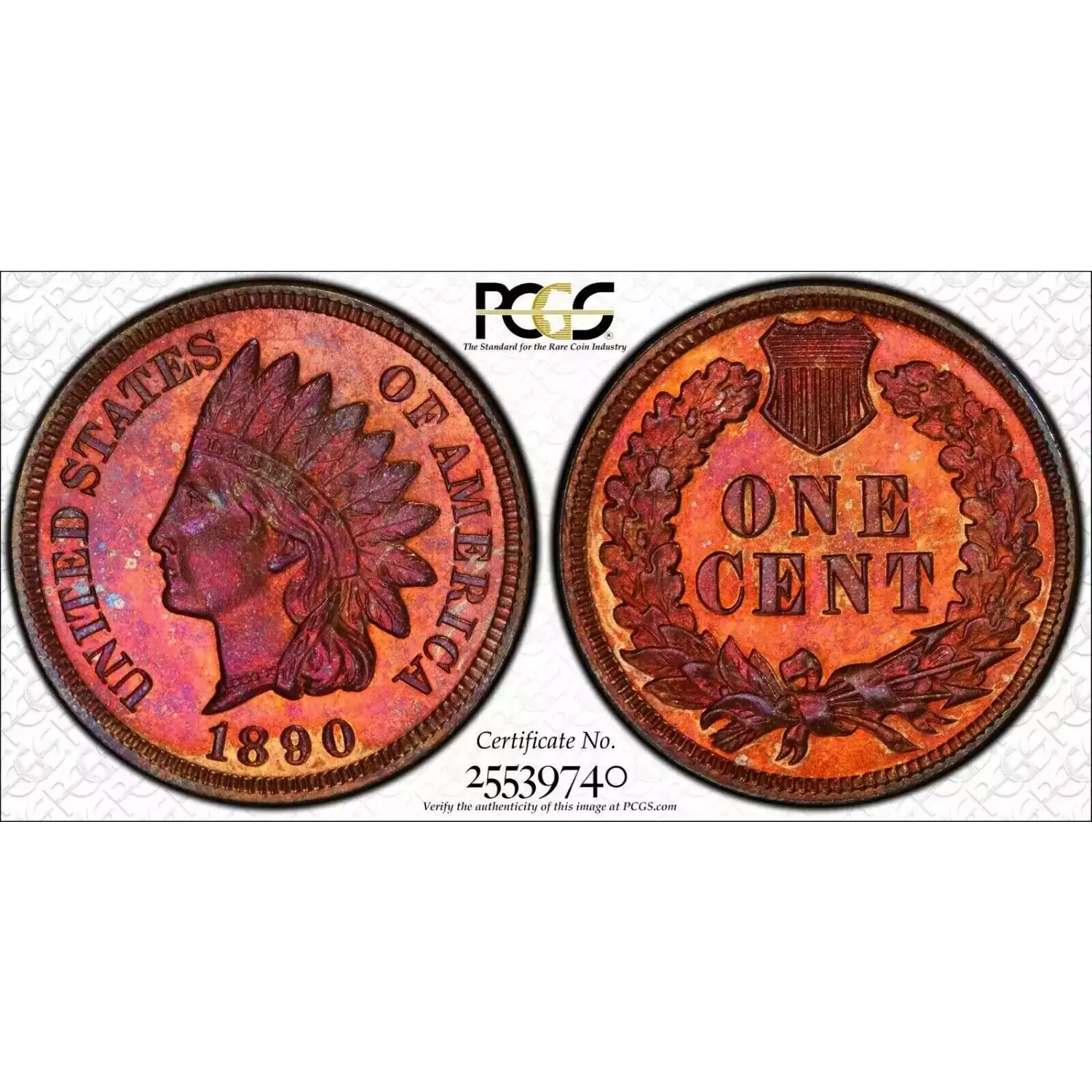 1890 1C PCGS PR65RB Rainbow Toned Indian Head Penny
