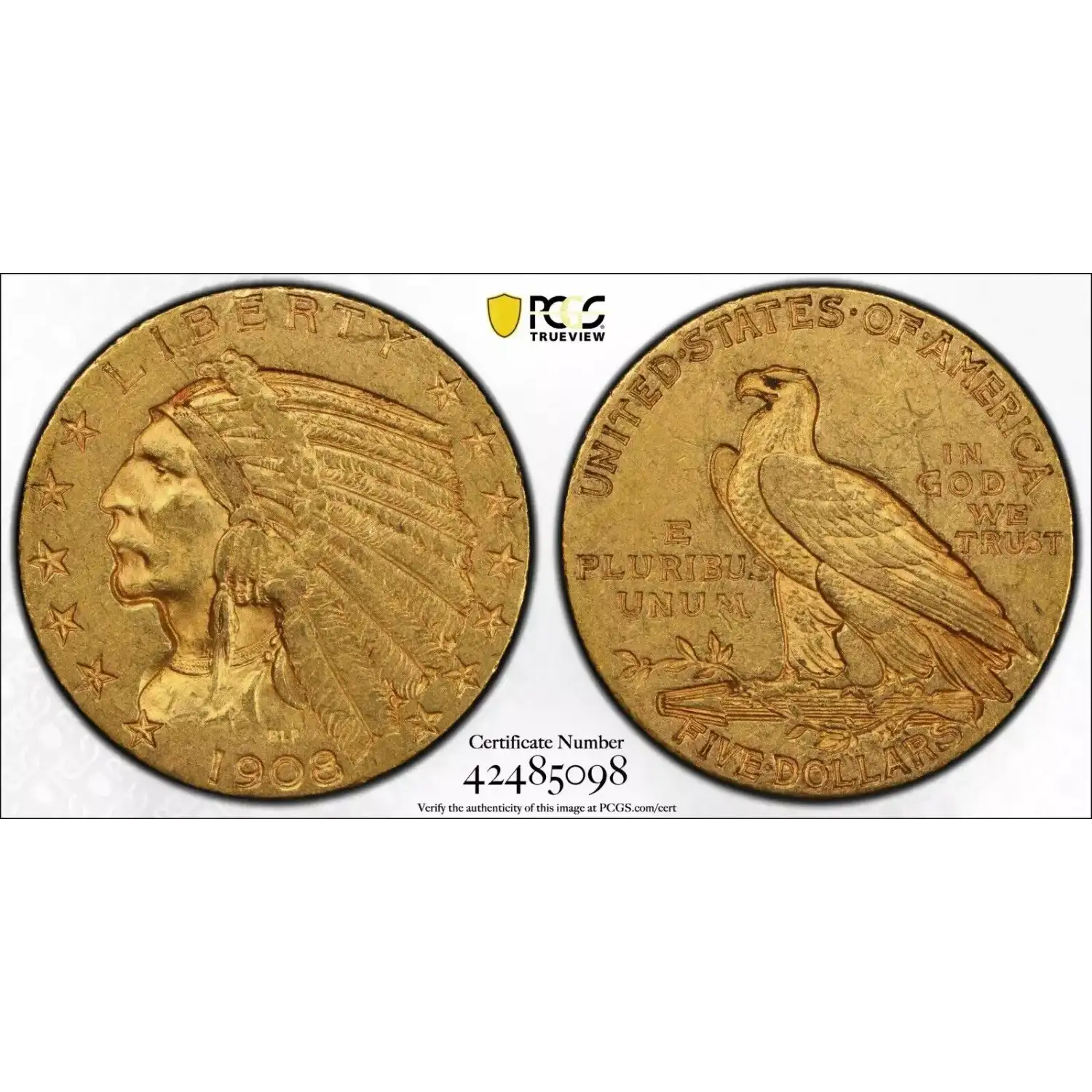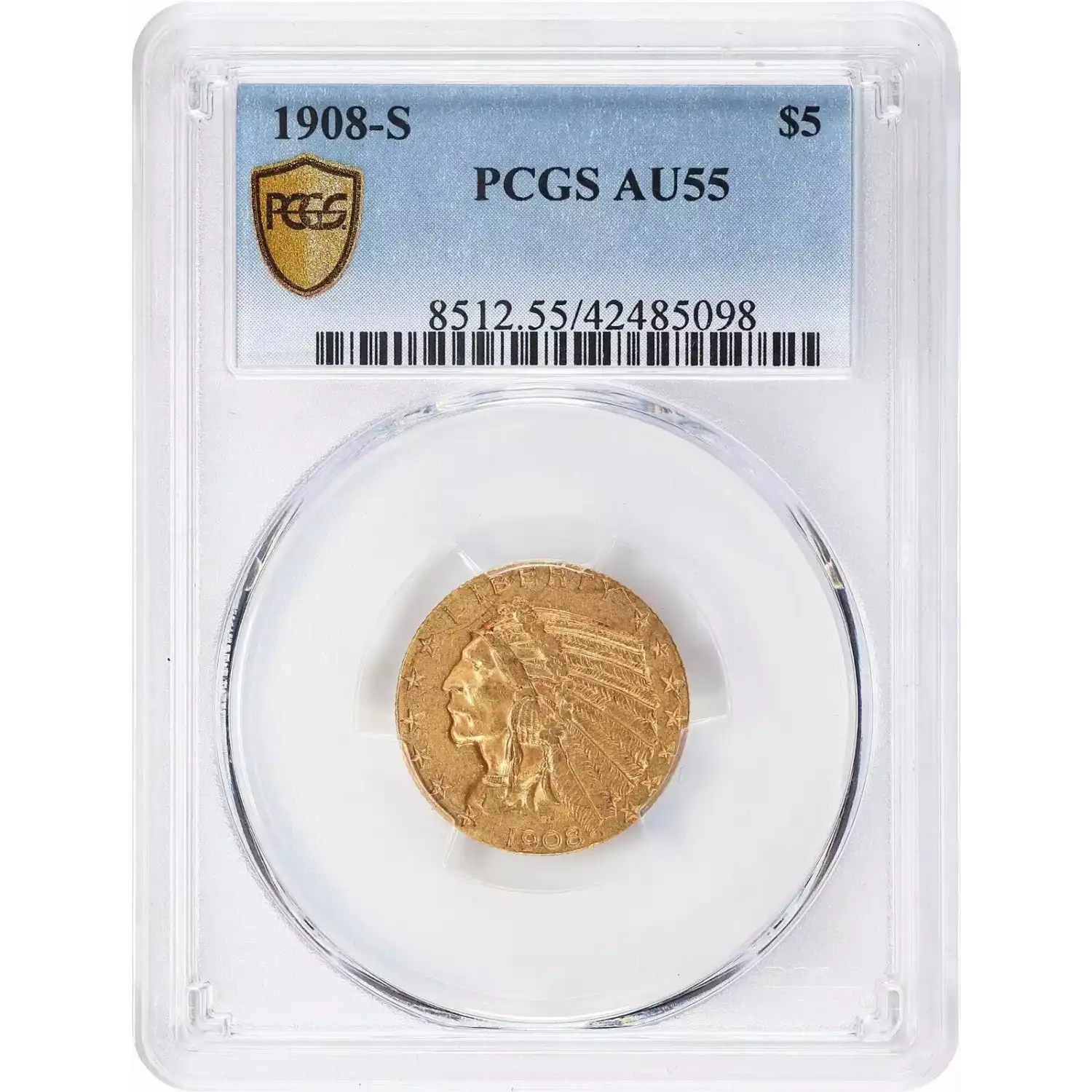 1908-S $5 Gold Indian Head PCGS AU55 Gold Half Eagle