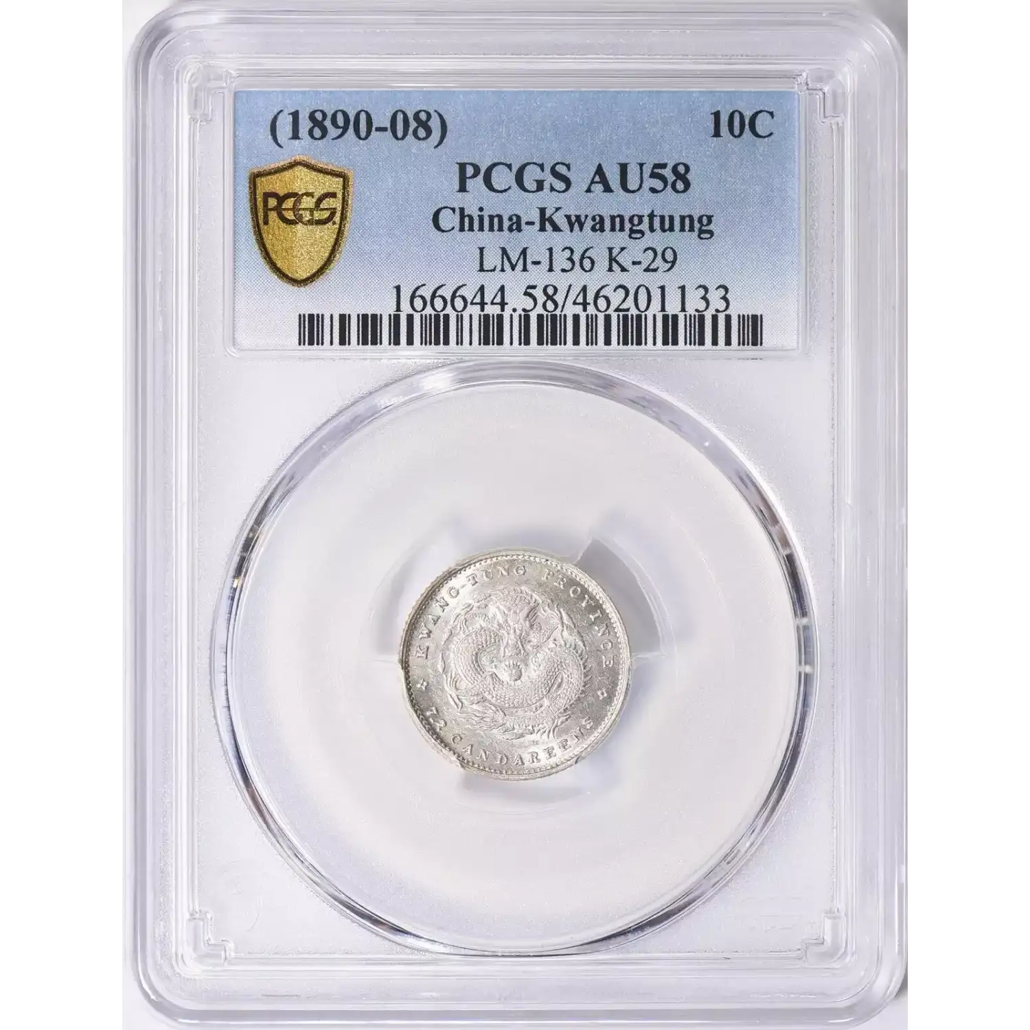 1890-08 China-Kwangtung 10C PCGS AU58 LM-136 K-29