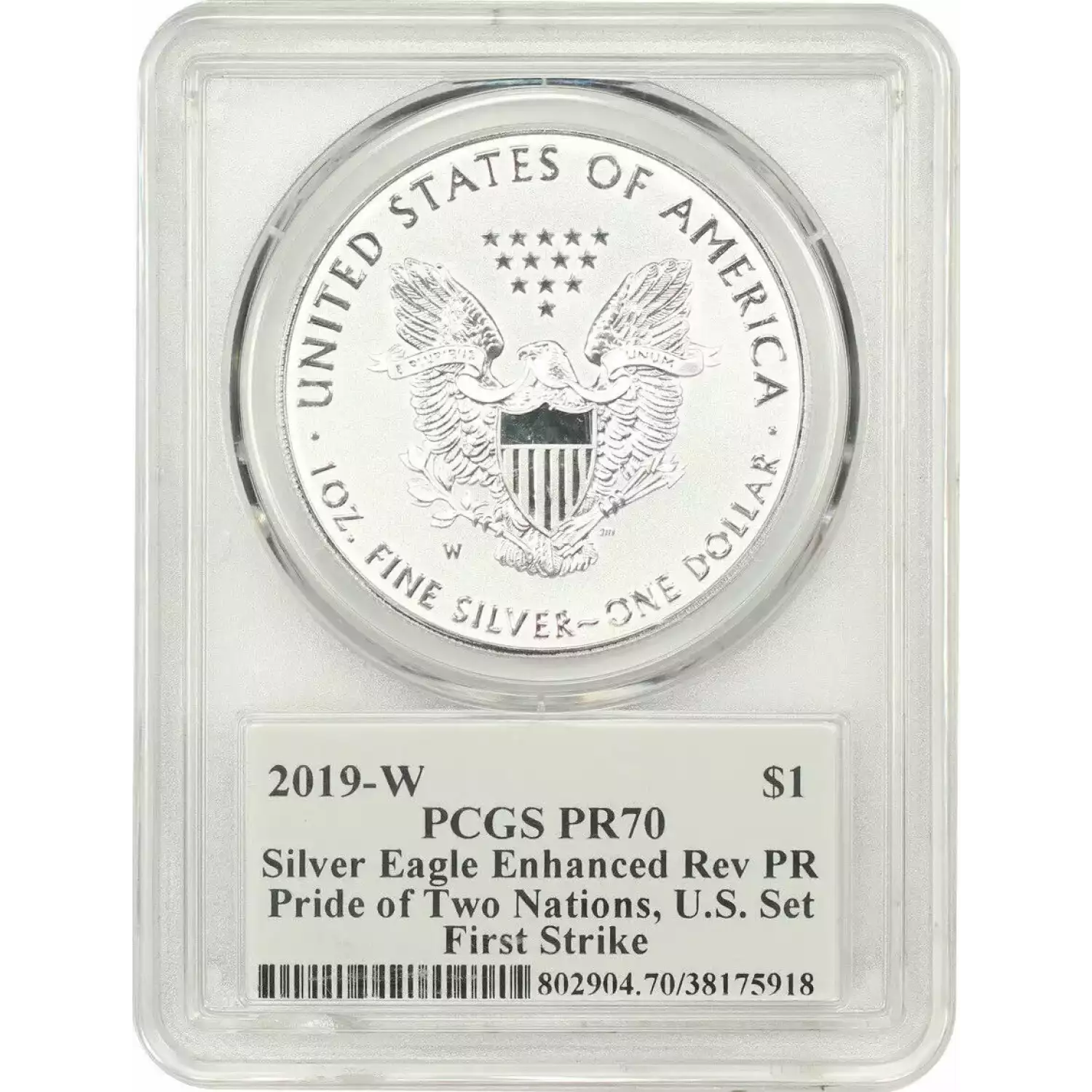 2019 Bullion Silver Eagles PCGS PR-70 Silver Eagle Enhanced Rev PR FDI Pride of TwoNationsU.S.Set