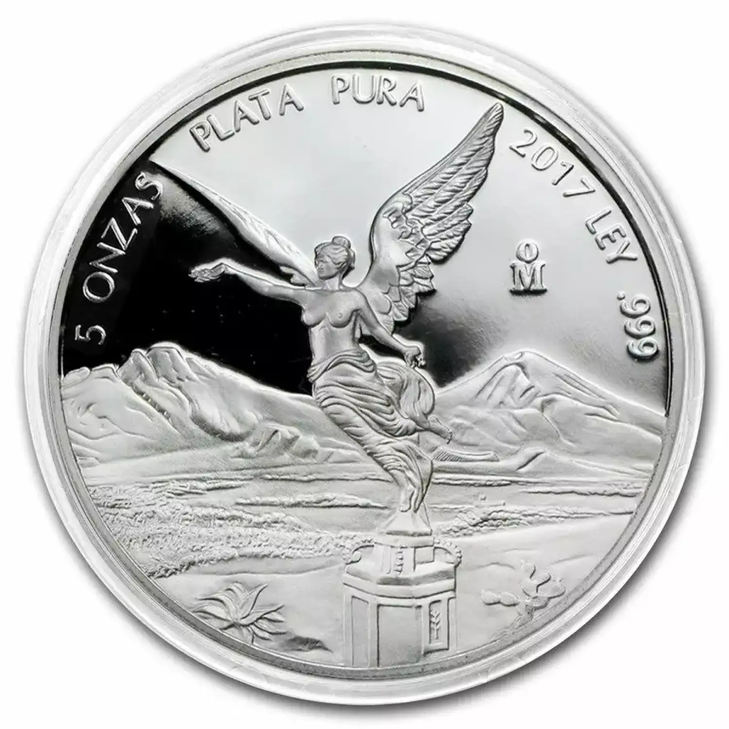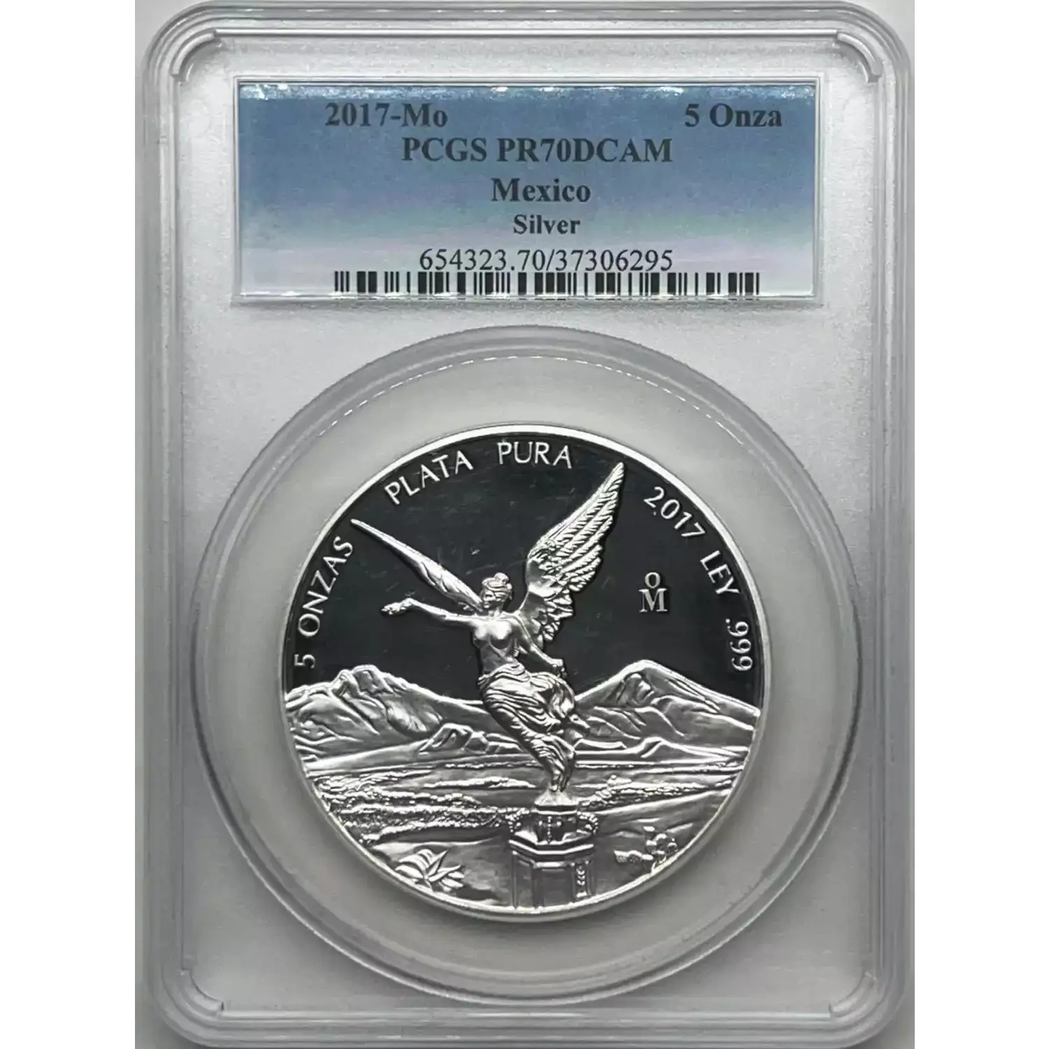 2017 MEXICO Silver 5 ONZAS (5 Troy Ounces of Silver) PCGS PR-70 DCAM Libertad Silver