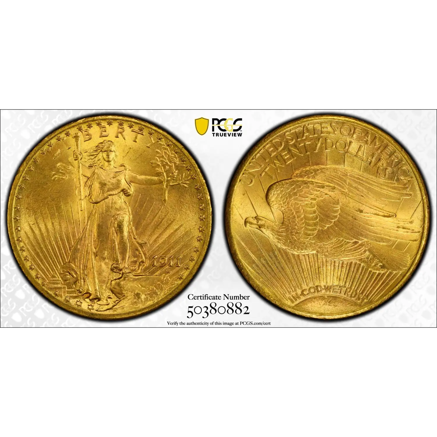 1911-D $20 Gold Saint Gaudens PCGS MS65 CAC Gold Dougle Eagle