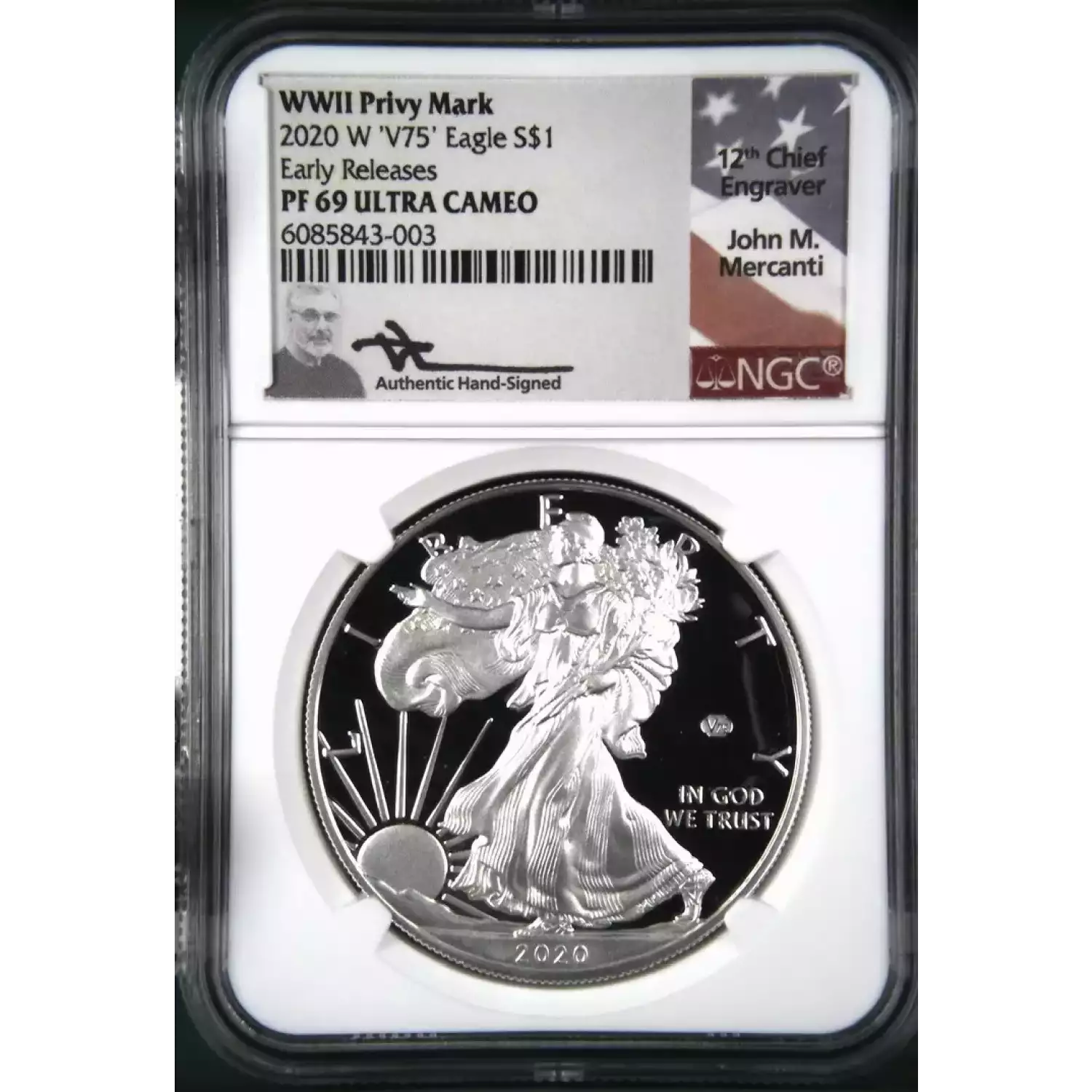 2020-W "V75" NGC PR70UCAM Silver Eagle Early Releases Mercanti Signature