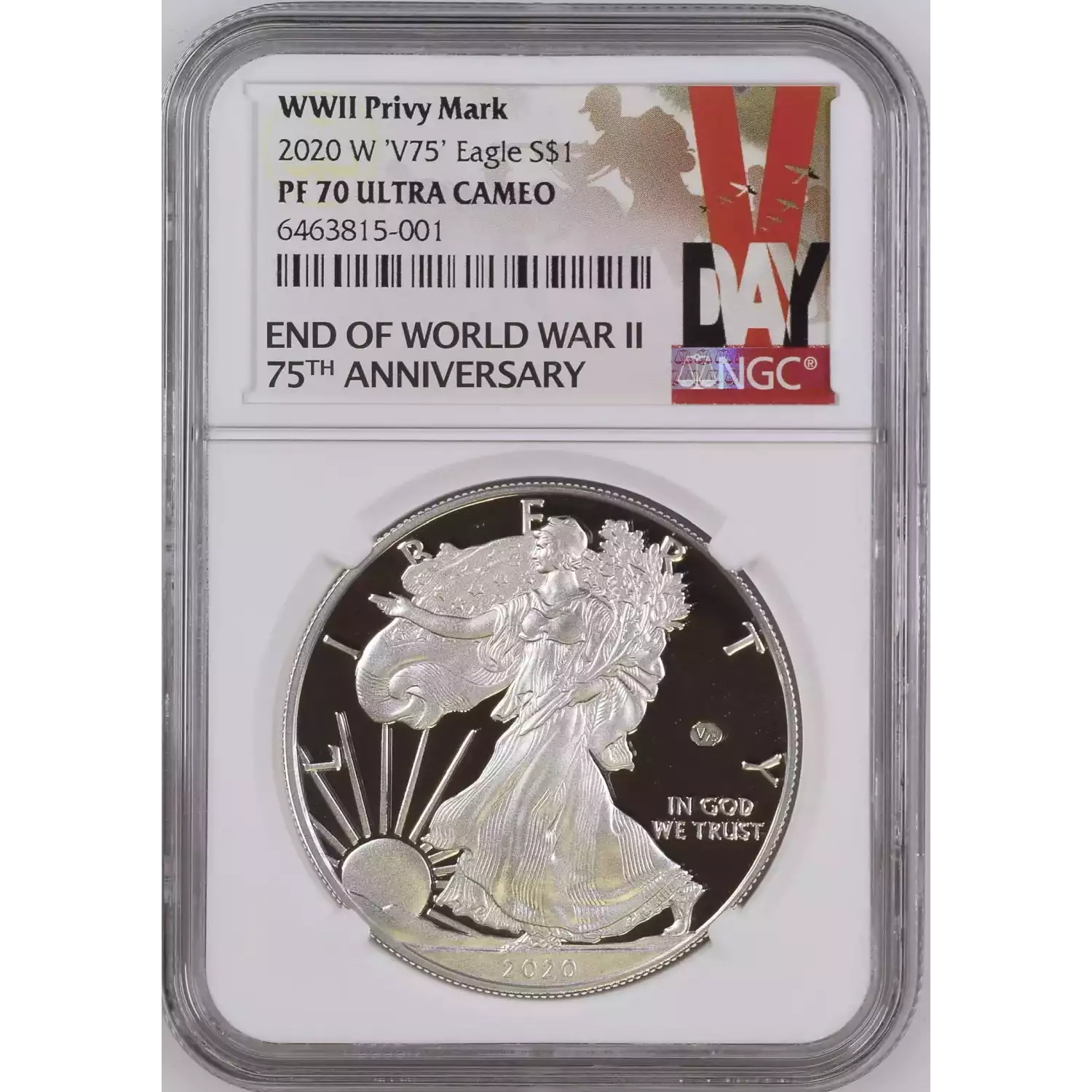 2020-W 'V75' NGC PF70 UCAM American Silver Eagle WWII Privy