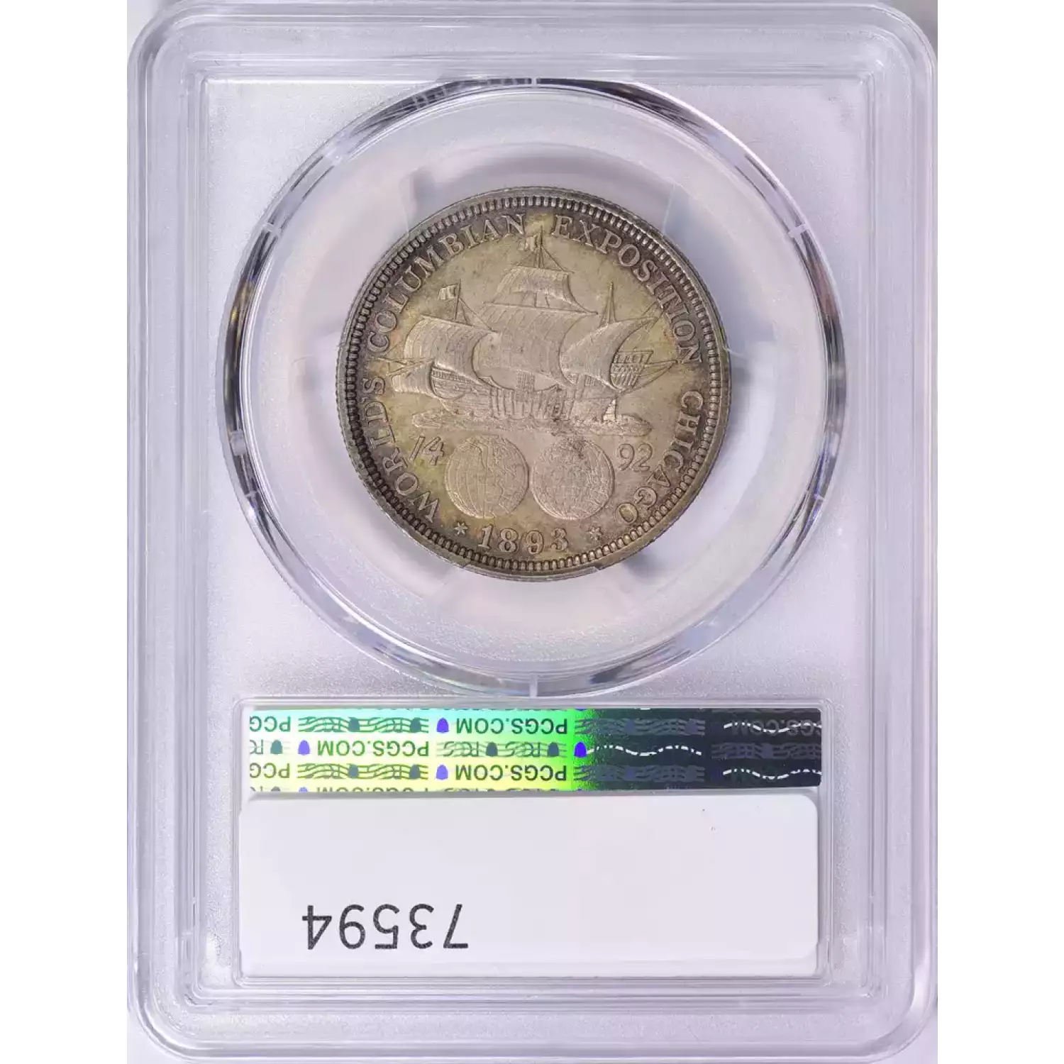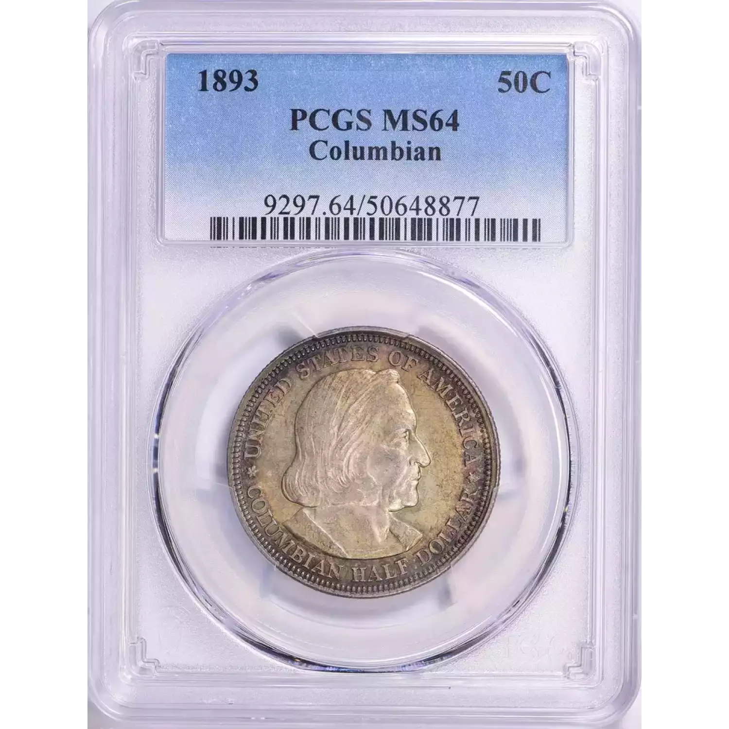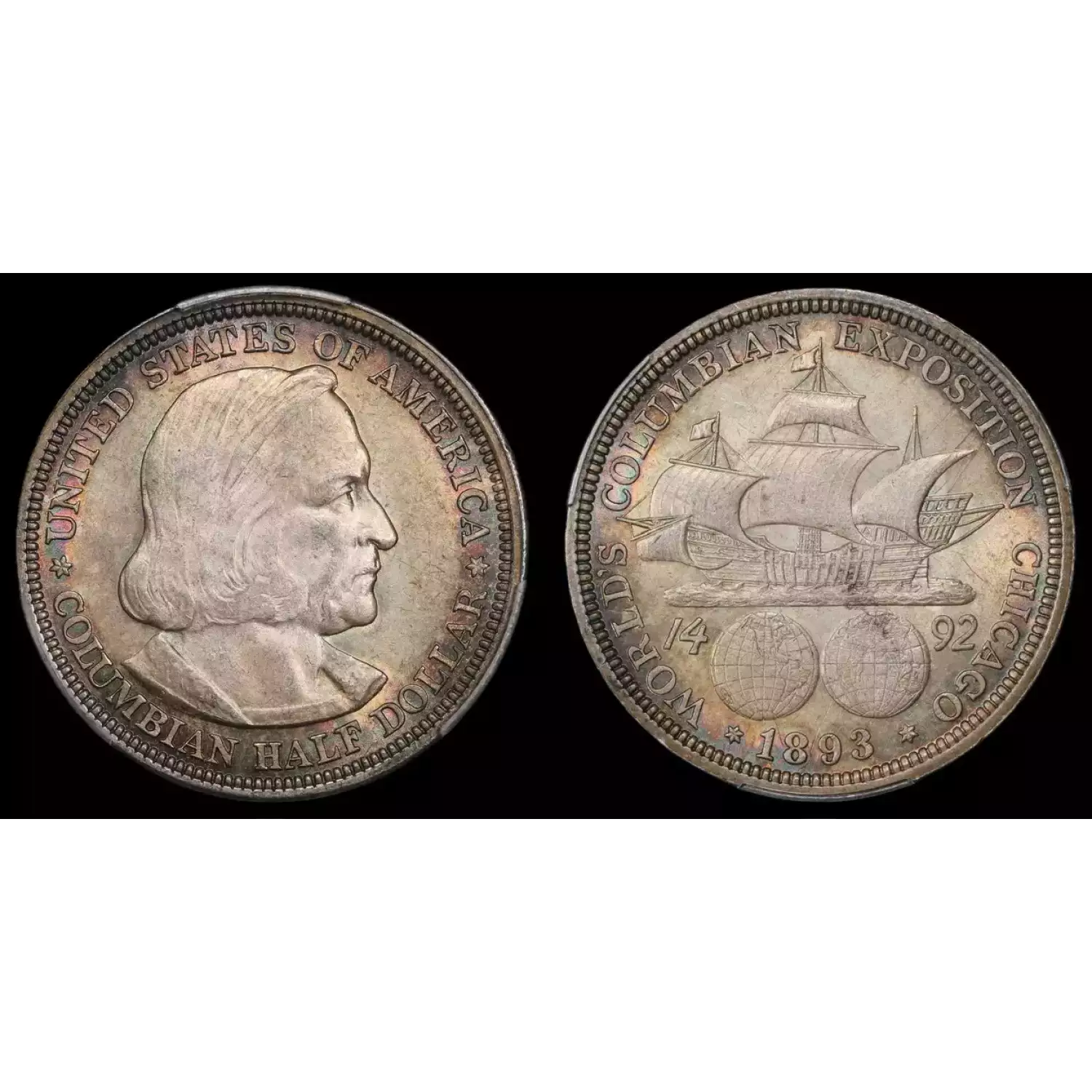 1893 50C Columbian PCGS MS64 Rainbow Toned Commemorative Silver Half Dollar