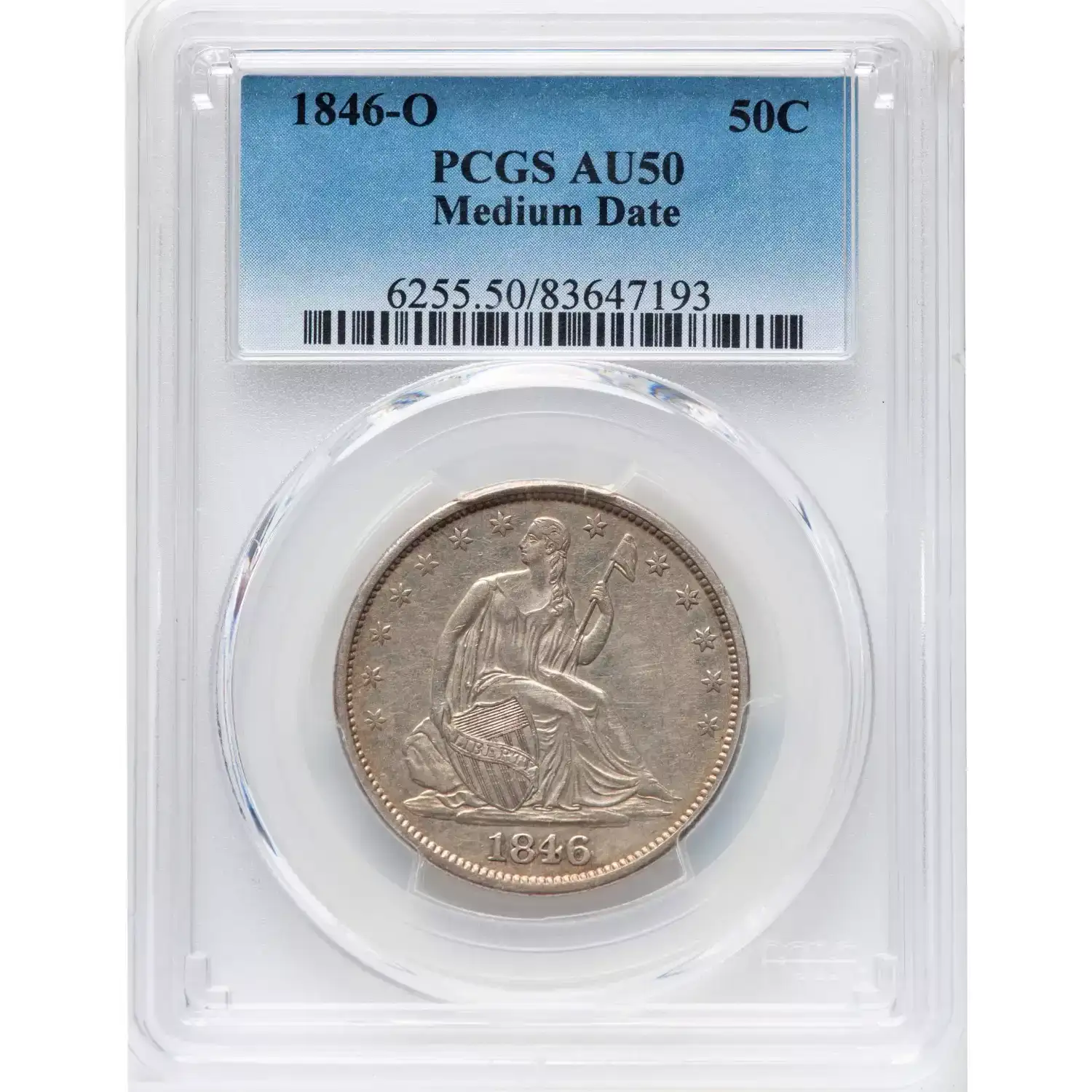 1846-O 50C Medium Date PCGS AU50 Seated Liberty Half Dollar