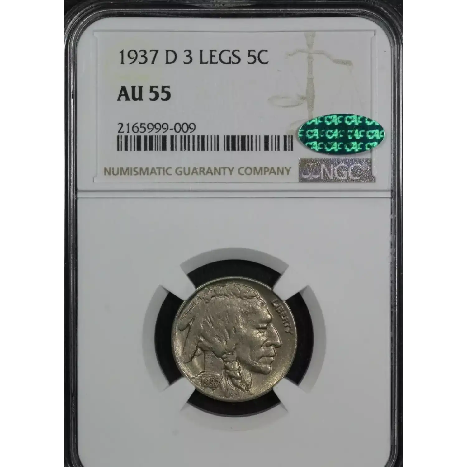 1937-D 3 Legs NGC AU55 CAC Buffalo Nickel