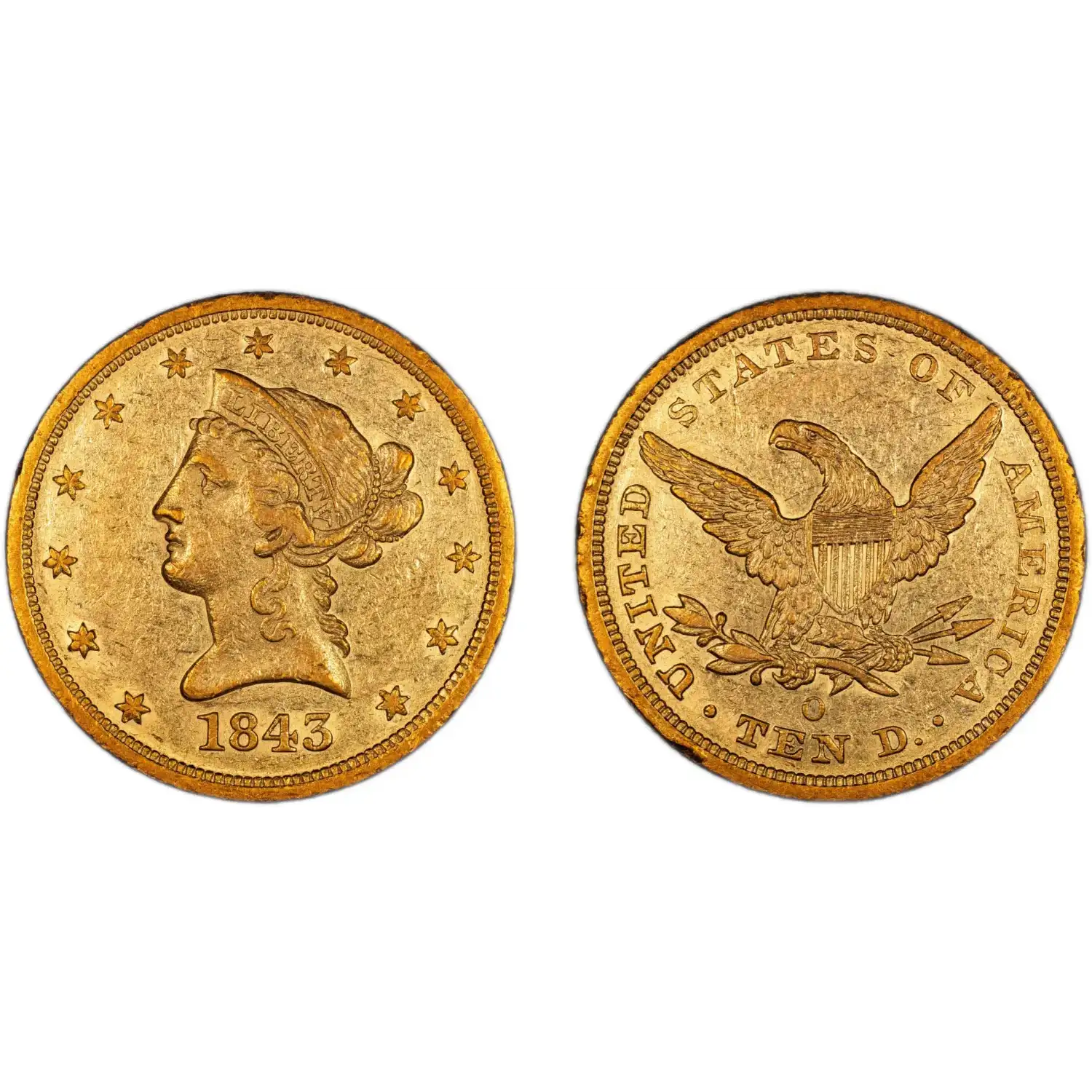 1843-O $10 Gold Liberty Head PCGS AU53 CAC Gold Eagle 56071333