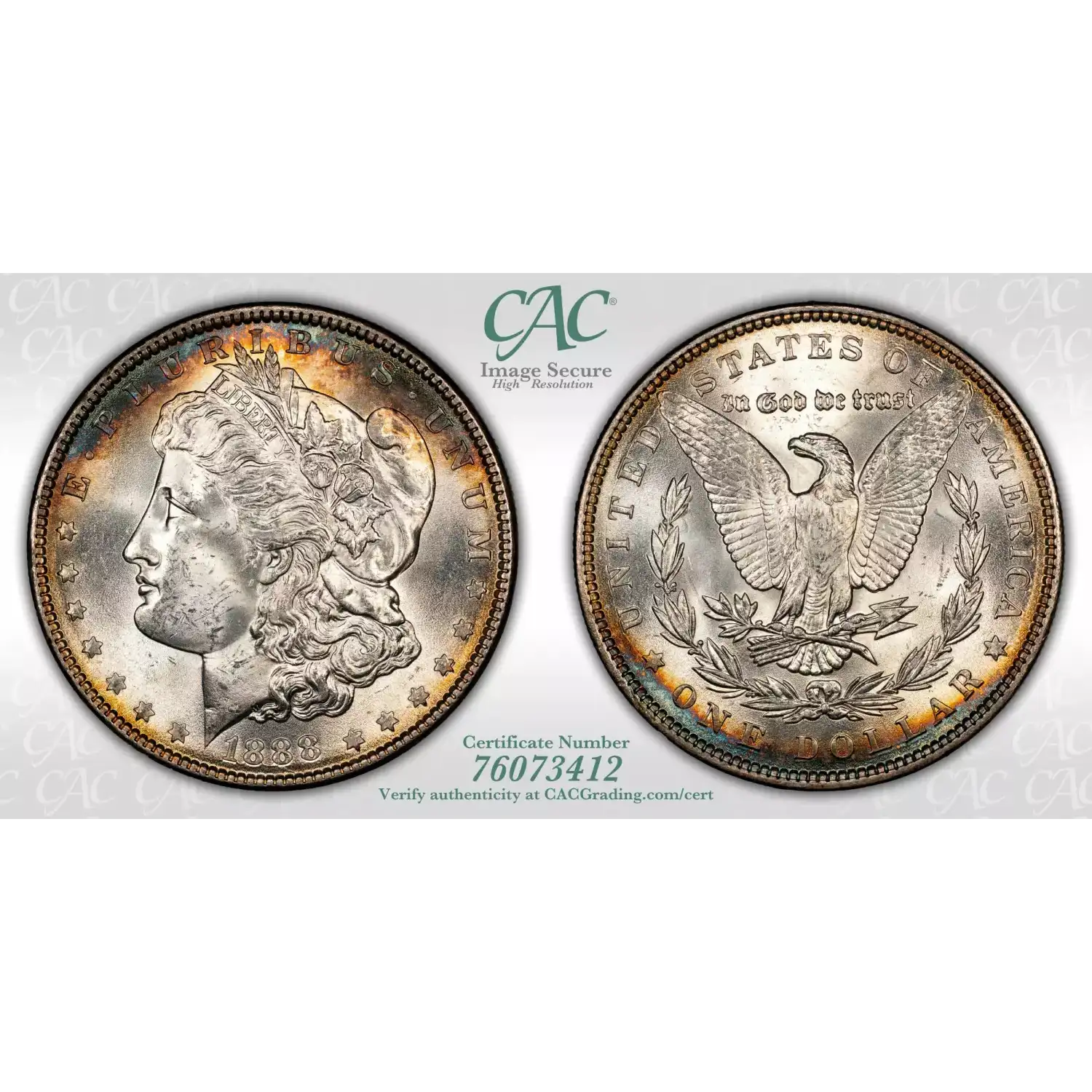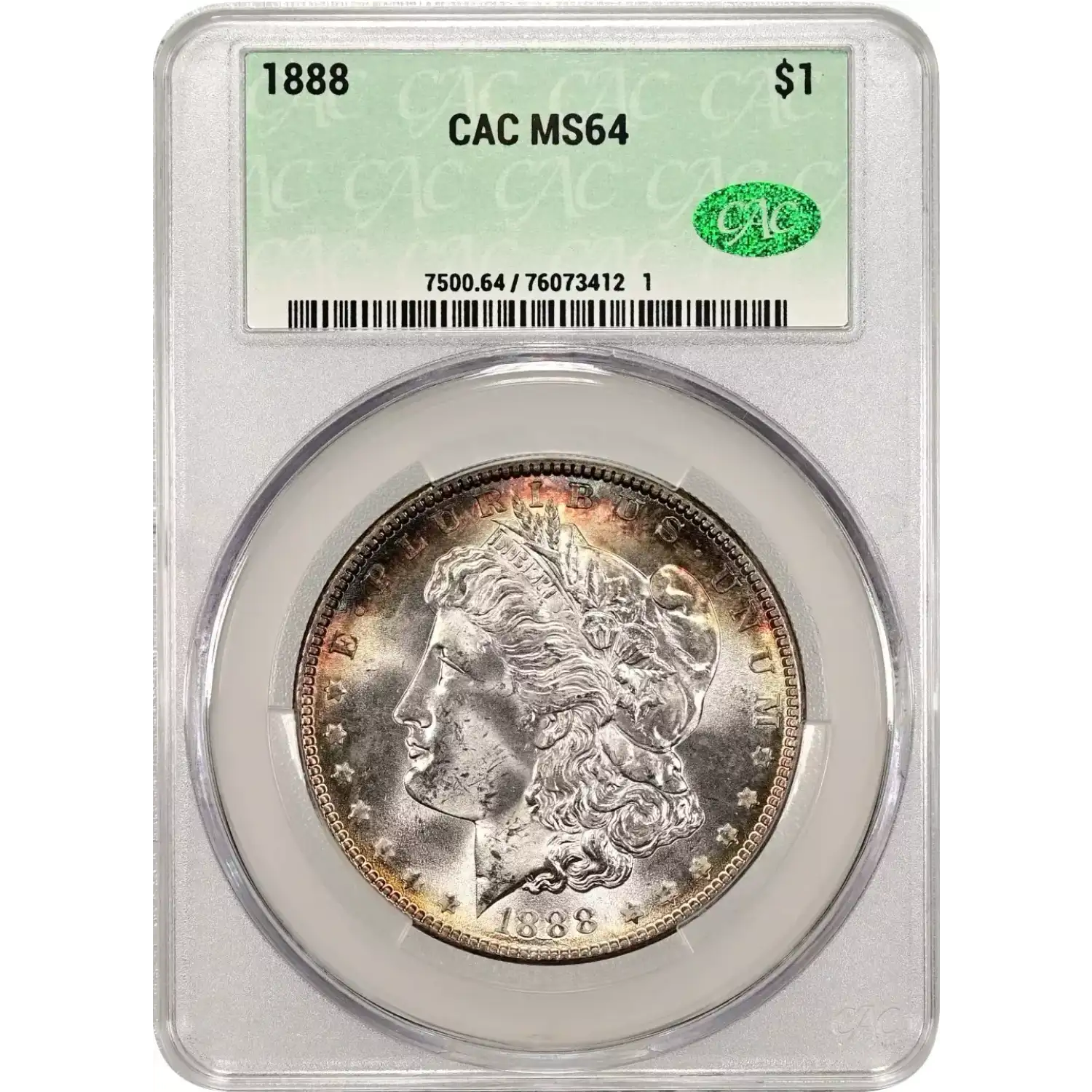 1888 $1 CACG MS64 CAC Morgan Silver Dollar PQ Rim Toning