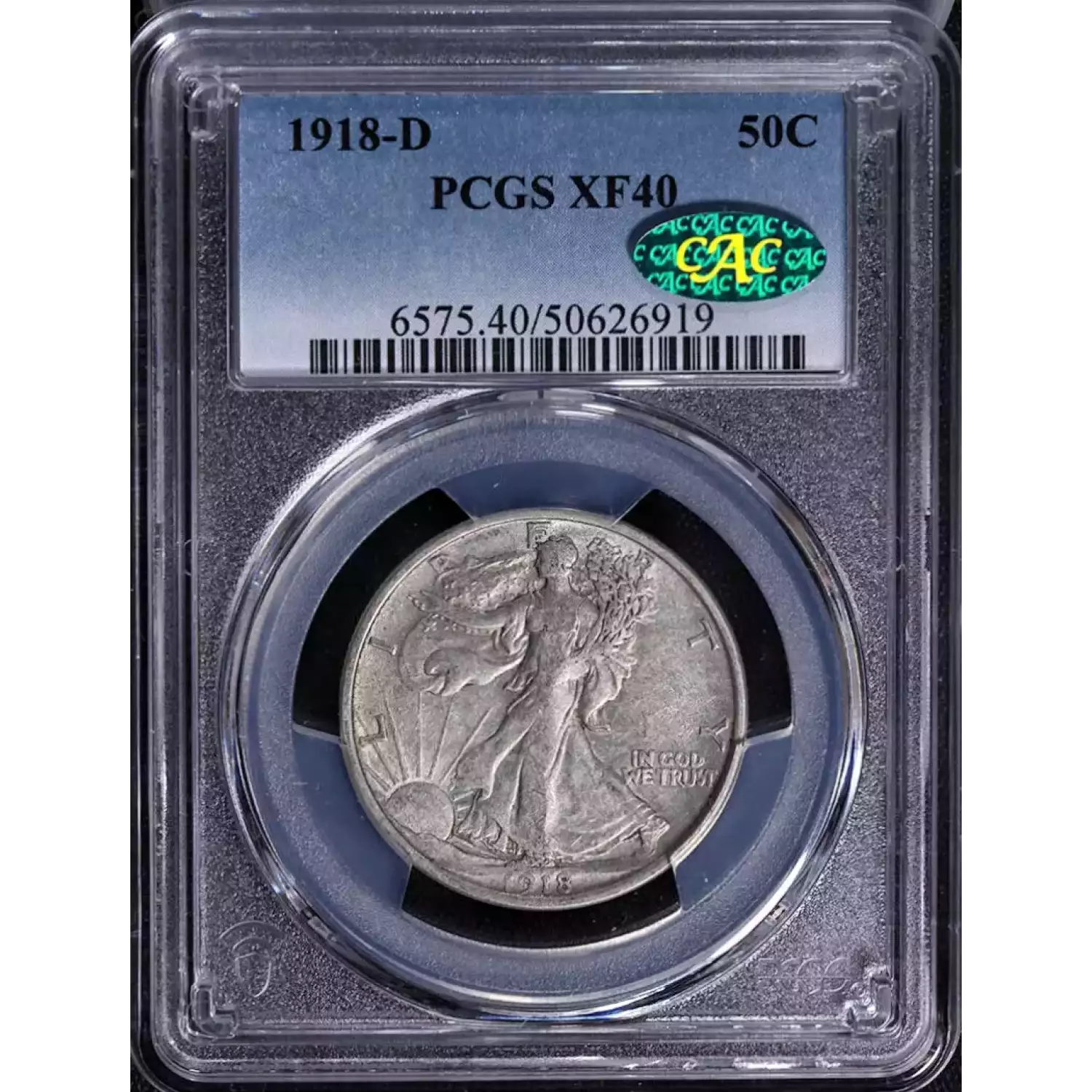 1918-D 50C PCGS XF40 CAC Walking Liberty Half Dollar