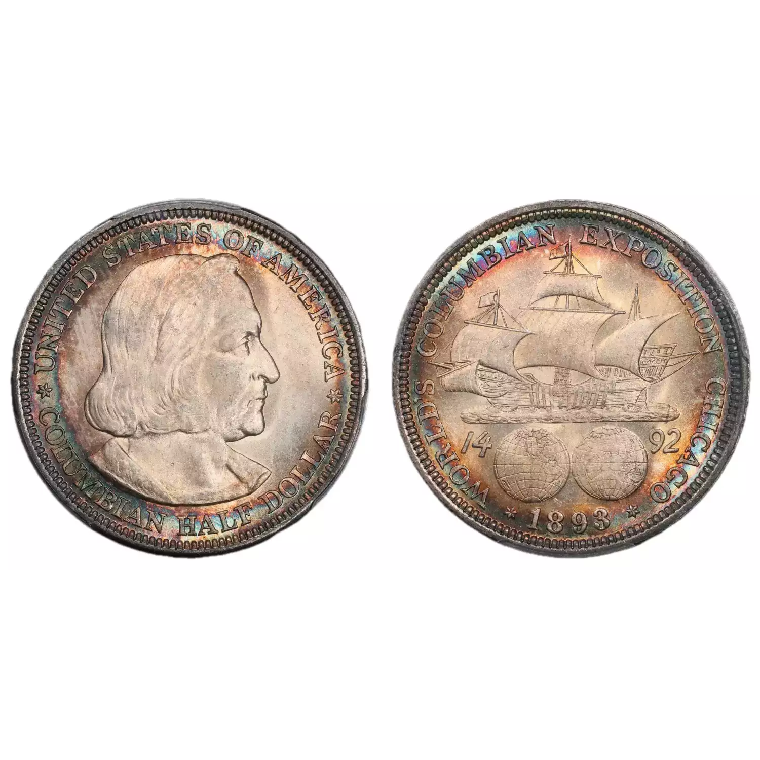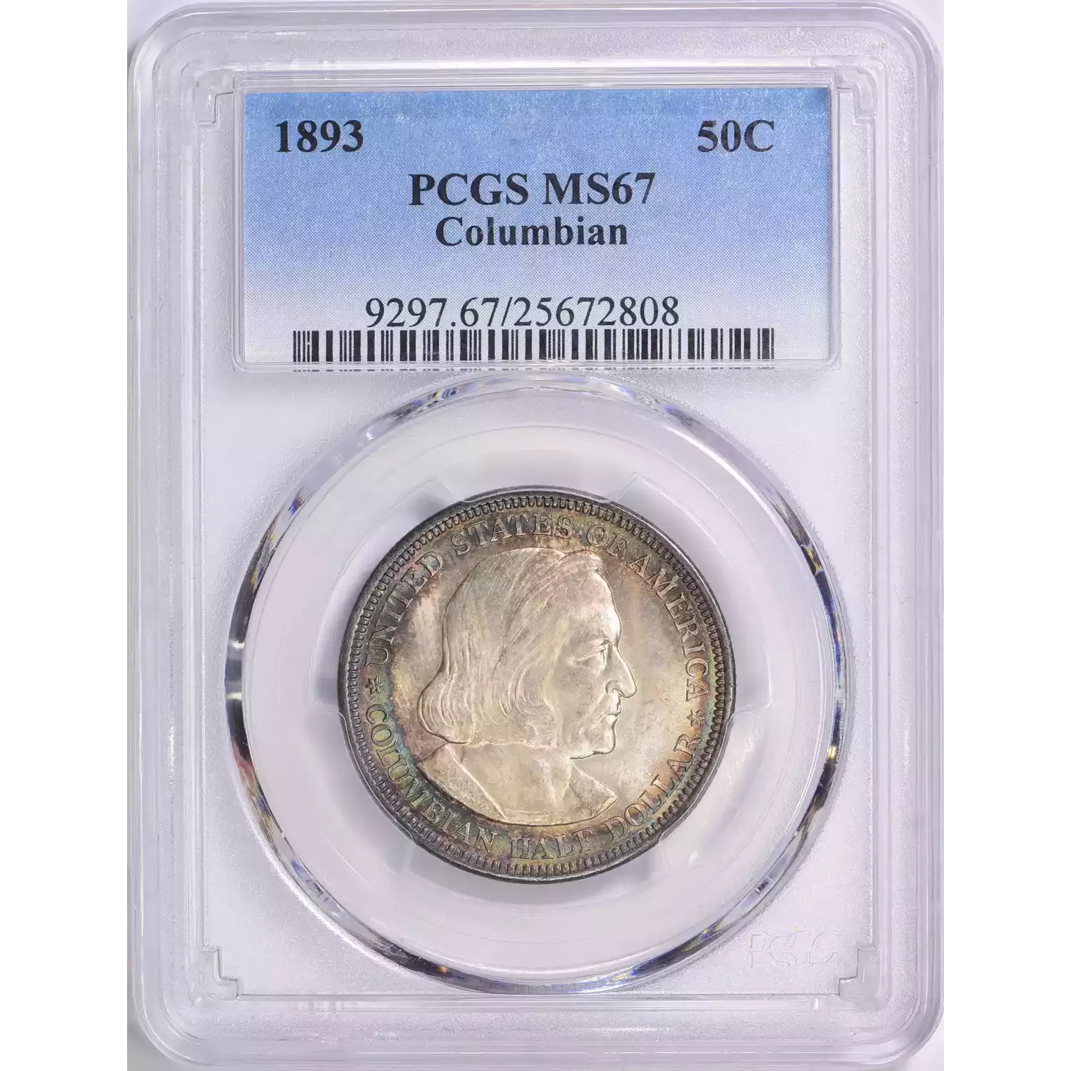 1893 50c Columbian PCGS MS67 Rainbow Toned Commemorative Half Dollar