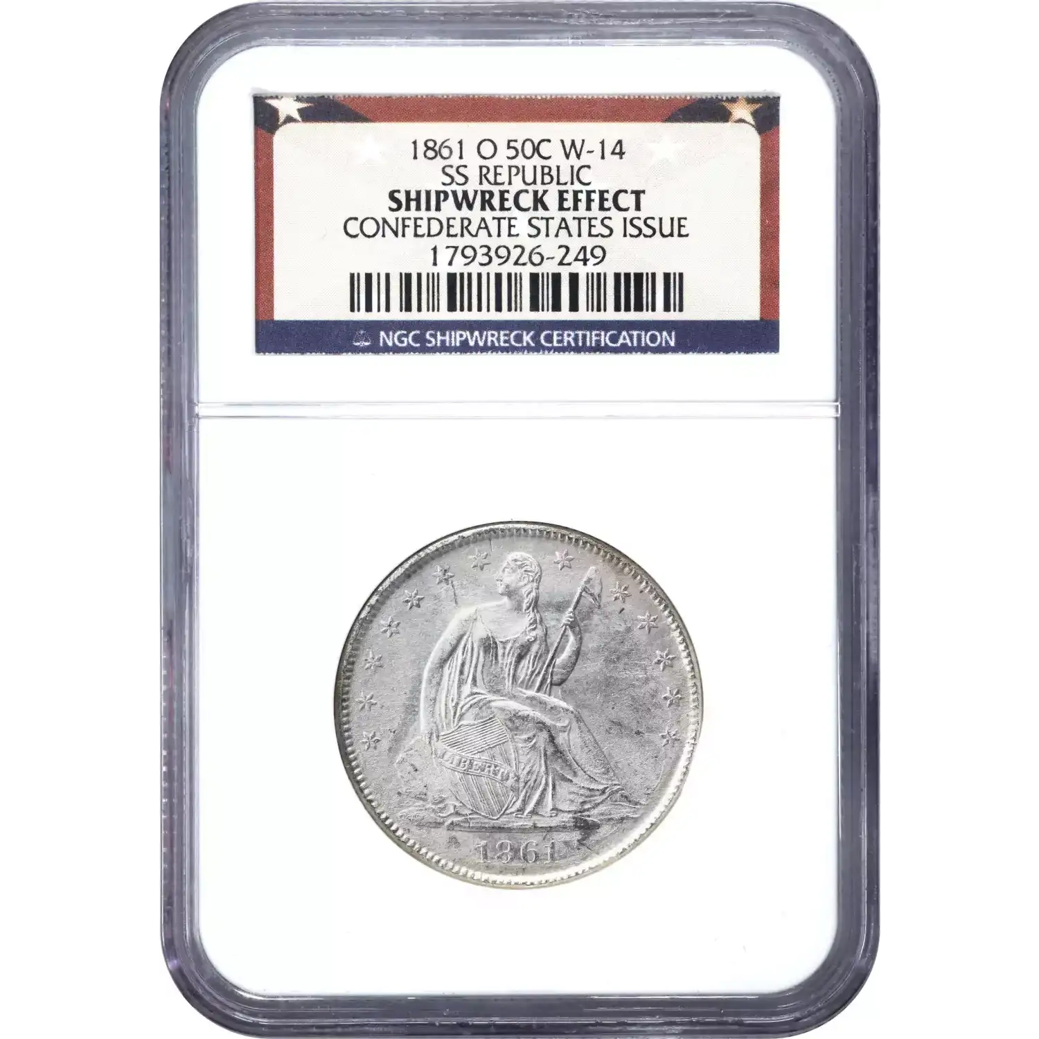 1861-O 50C W-14 NGC Seated Liberty Silver Half Dollar SS REPUBLIC Shipwreck Effect Confederate States Issue