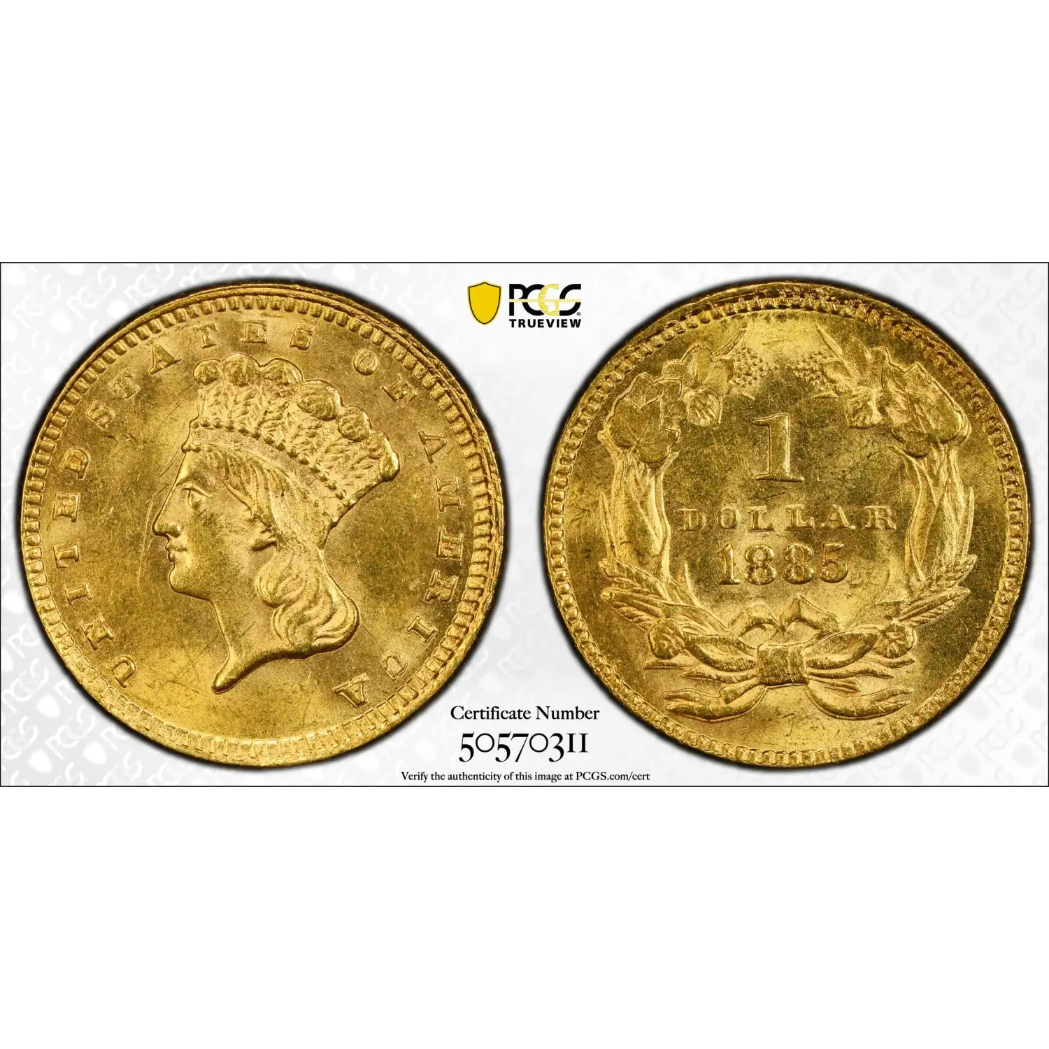 1885 Indian Princess Large Head Gold Dollar PCGS MS-63