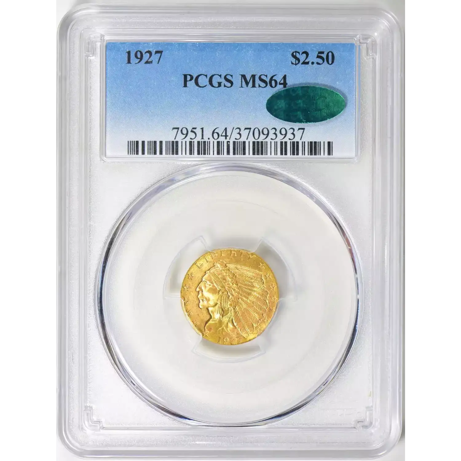 1927 $2.50 Gold Indian Head PCGS MS64 CAC Gold Quarter Eagle