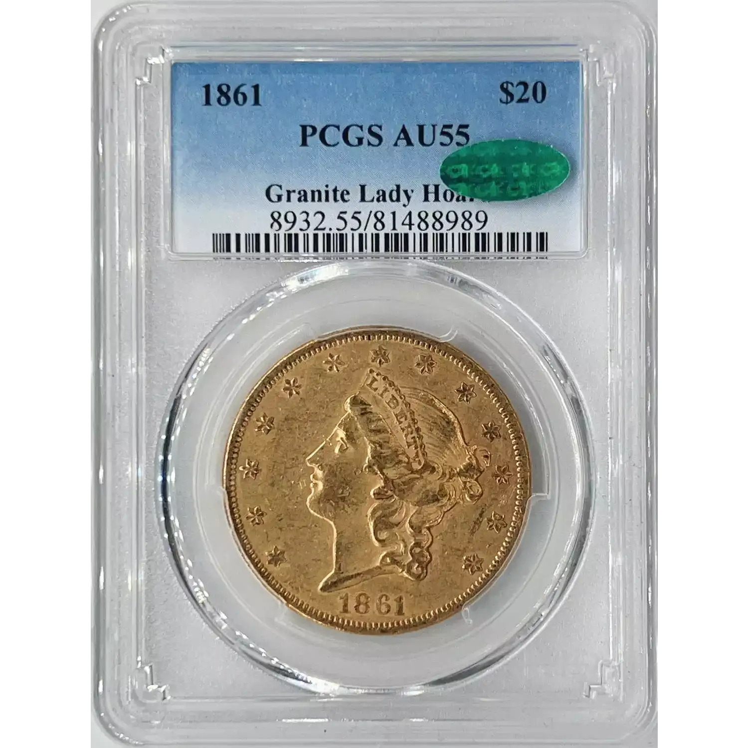 1861 $20 Gold Liberty Head PCGS AU55 CAC Gold Double Eagle
