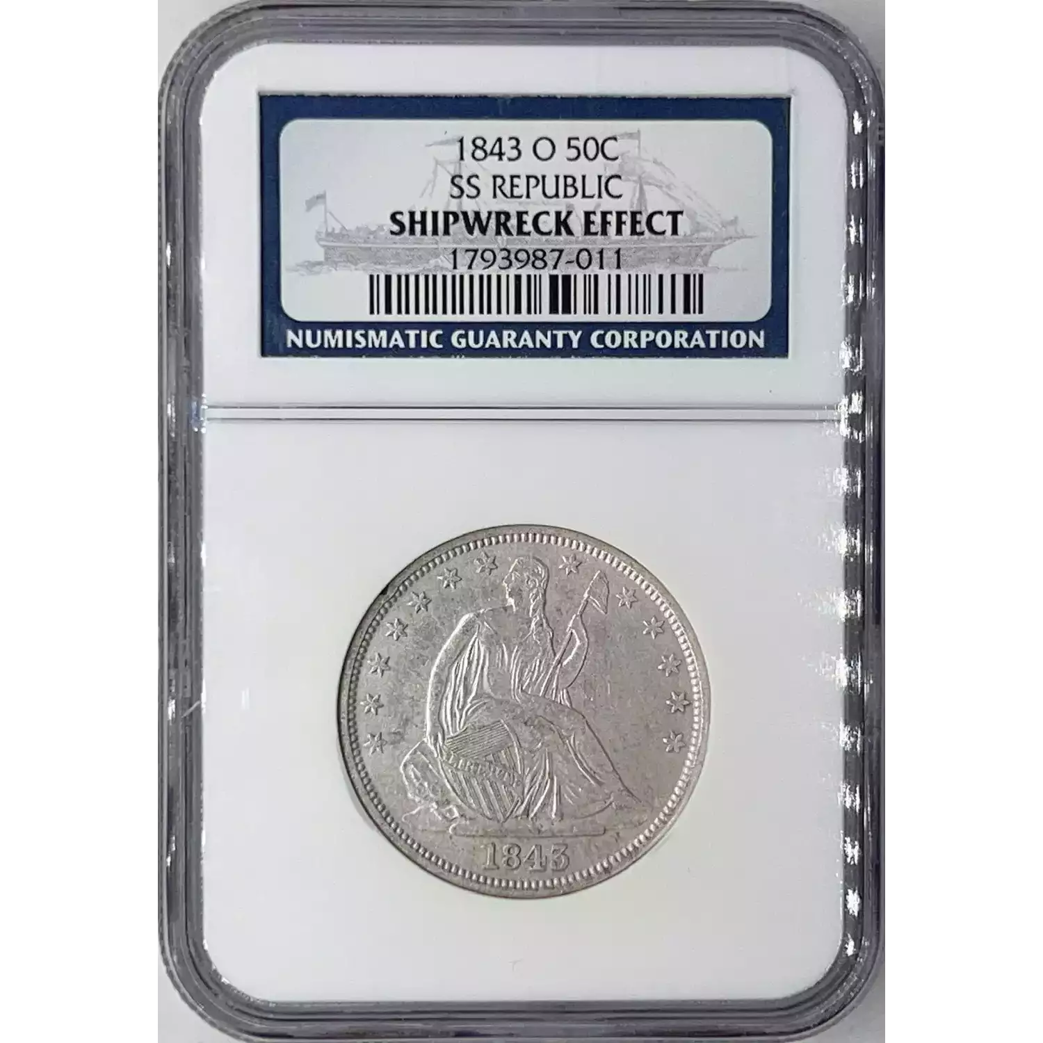 1843-O 50c SS REPUBLIC NGC Shipwreck Effect