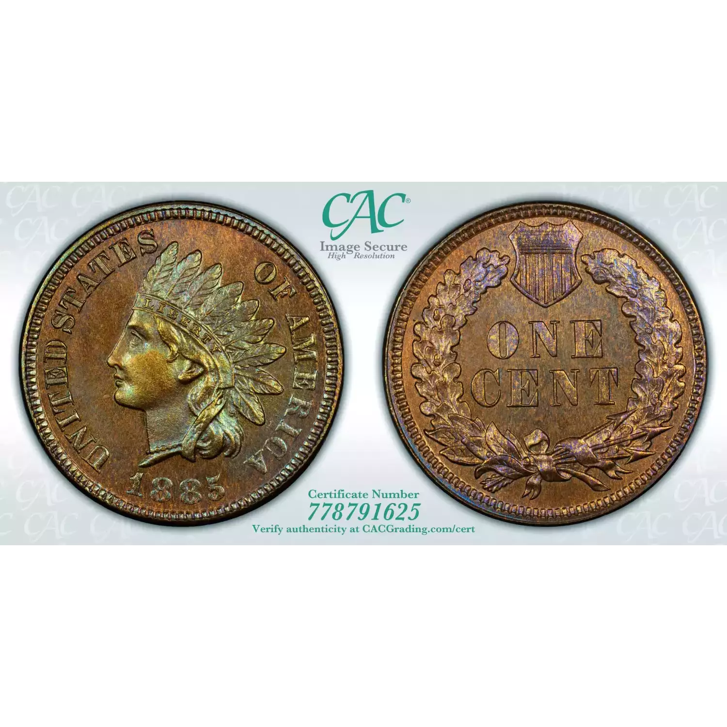 1885 1C CACG PR67BN CAC Rainbow Toned Indian Head Penny Cent