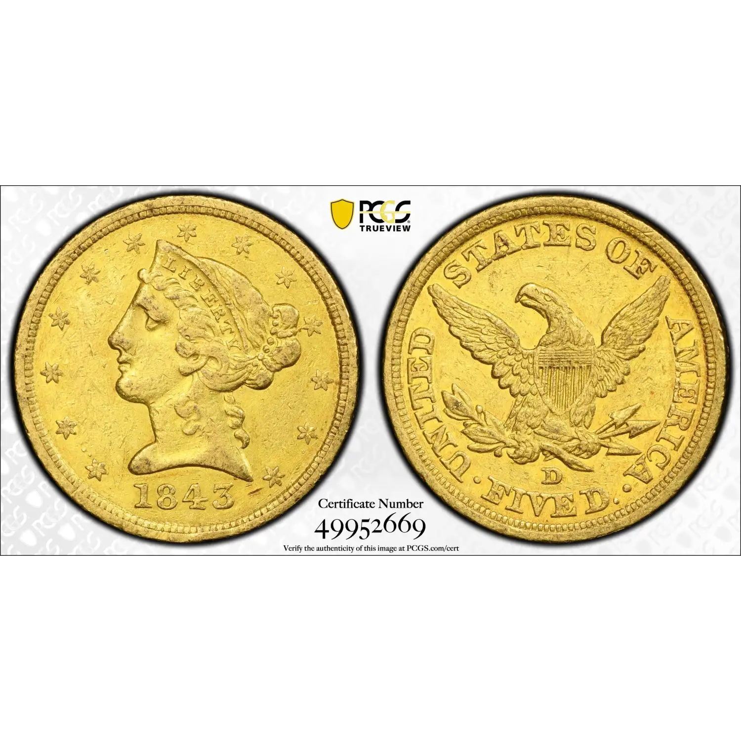 1843-D $5 Medium D