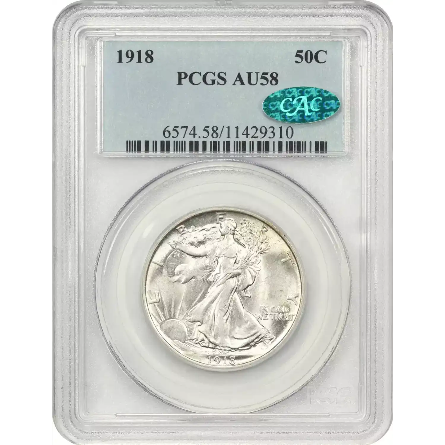 1918 Half Dollars Liberty Walking PCGS AU-58 CAC