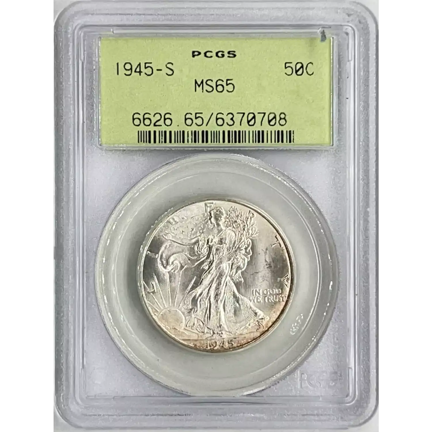 1945-S 50C PCGS OGH MS65 Walking Liberty Silver Half Dollar