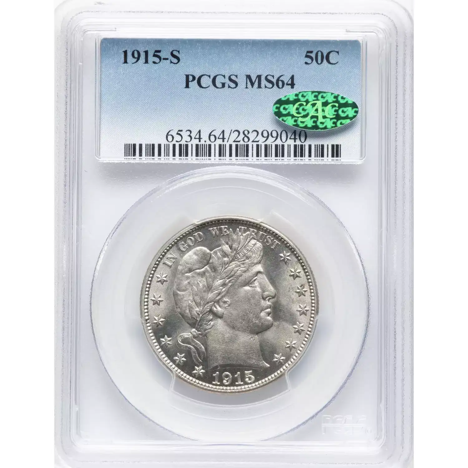 1915-S 50C PCGS MS64 CAC Barber Half Dollar