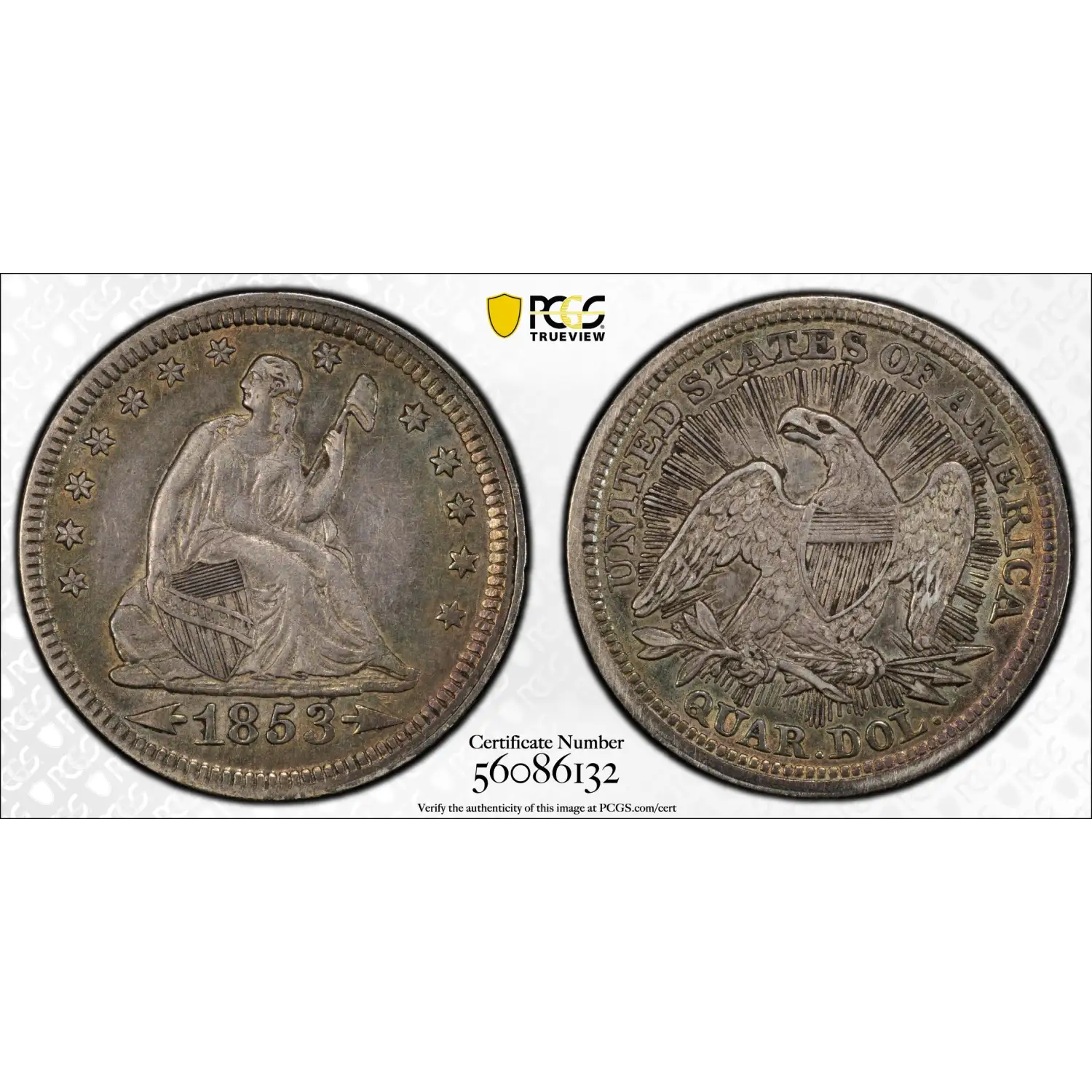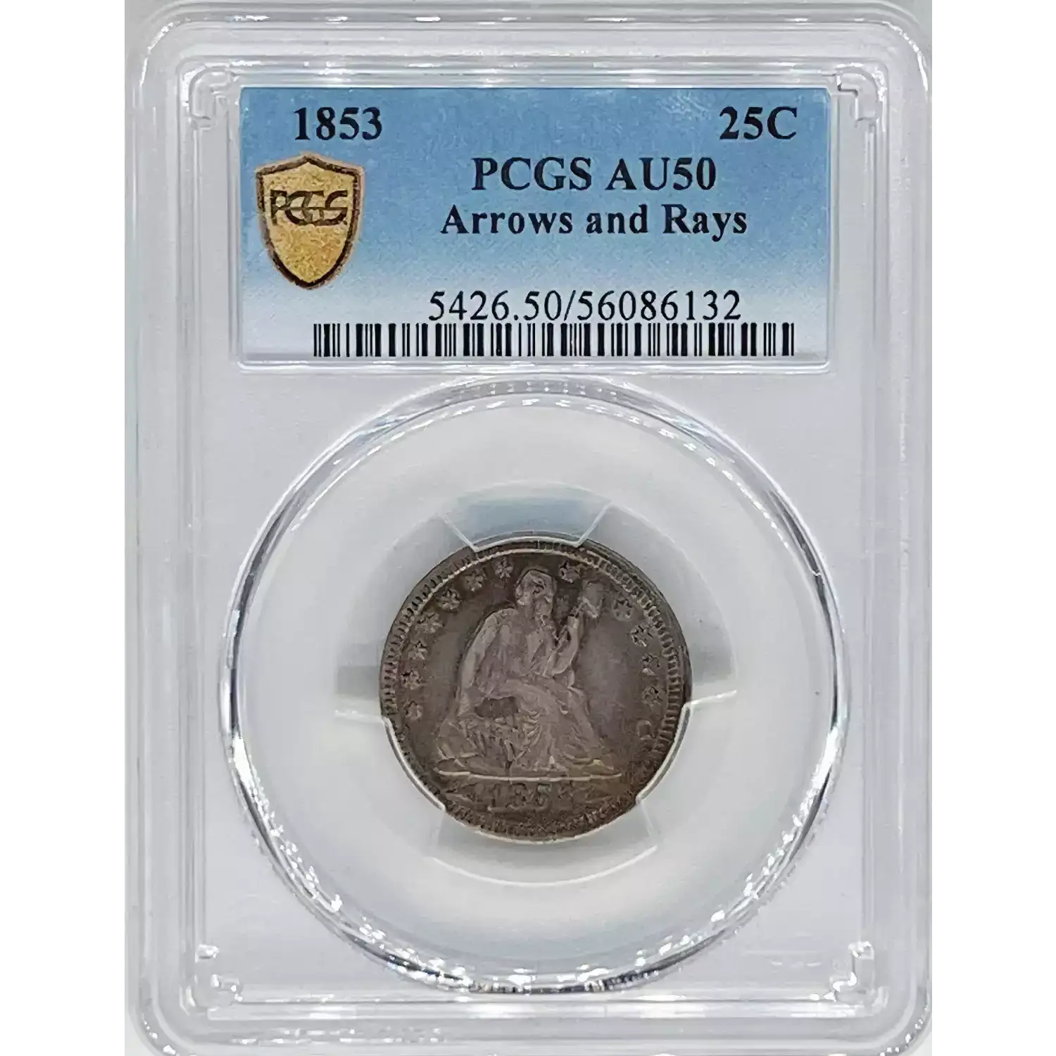 1853 Seated Liberty Quarter PCGS AU-50 Arrows and Rays