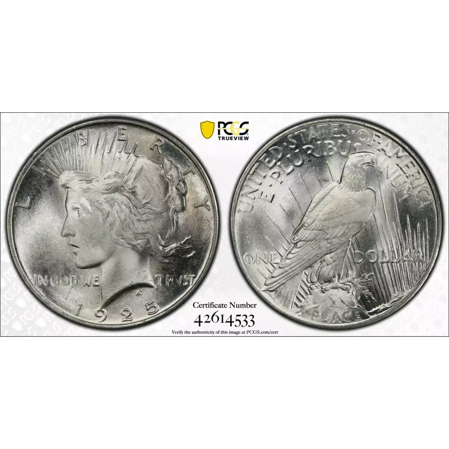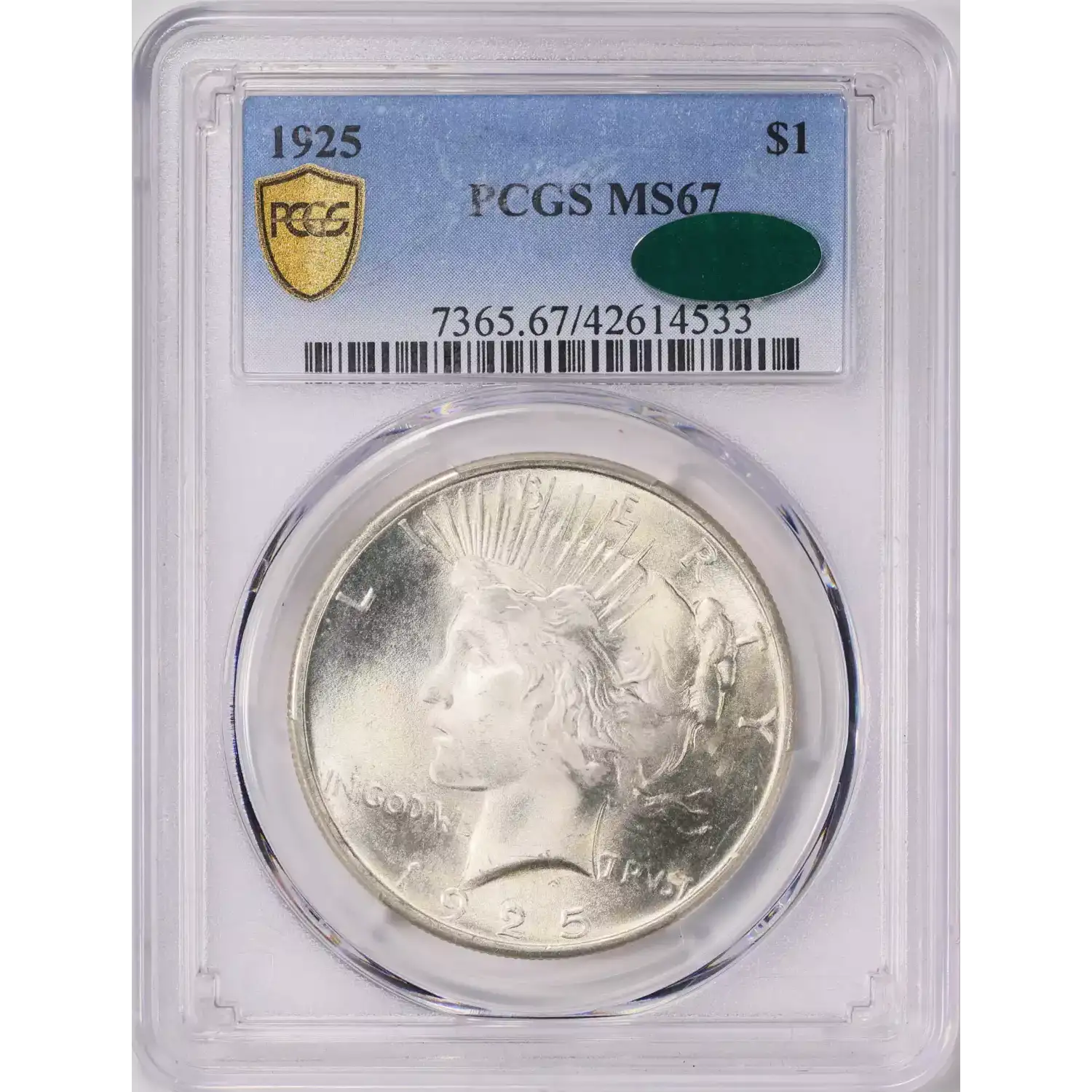 1925 $1 PCGS MS67 CAC Peace Silver Dollar