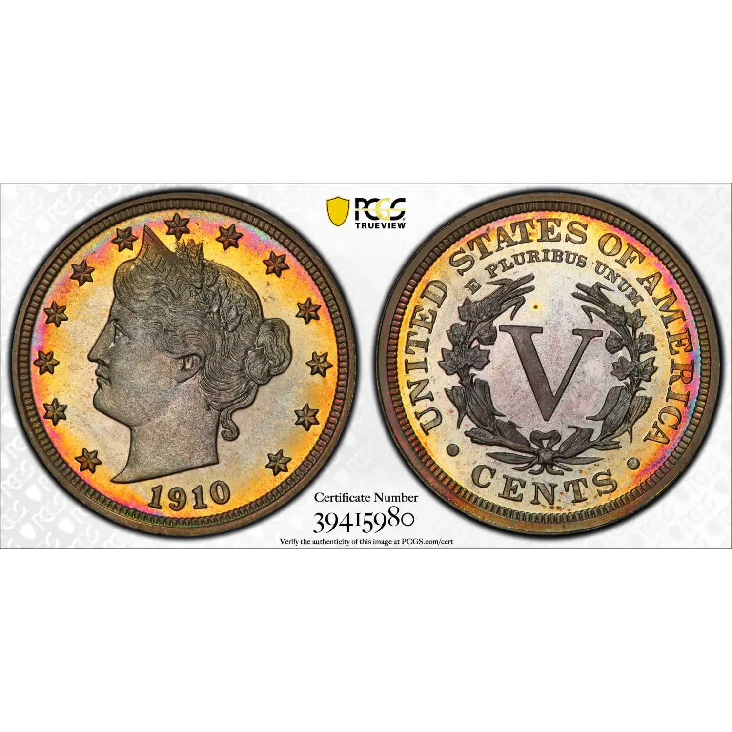 1910 5C PCGS PR67+ CAC Rainbow Toned Liberty V Nickel