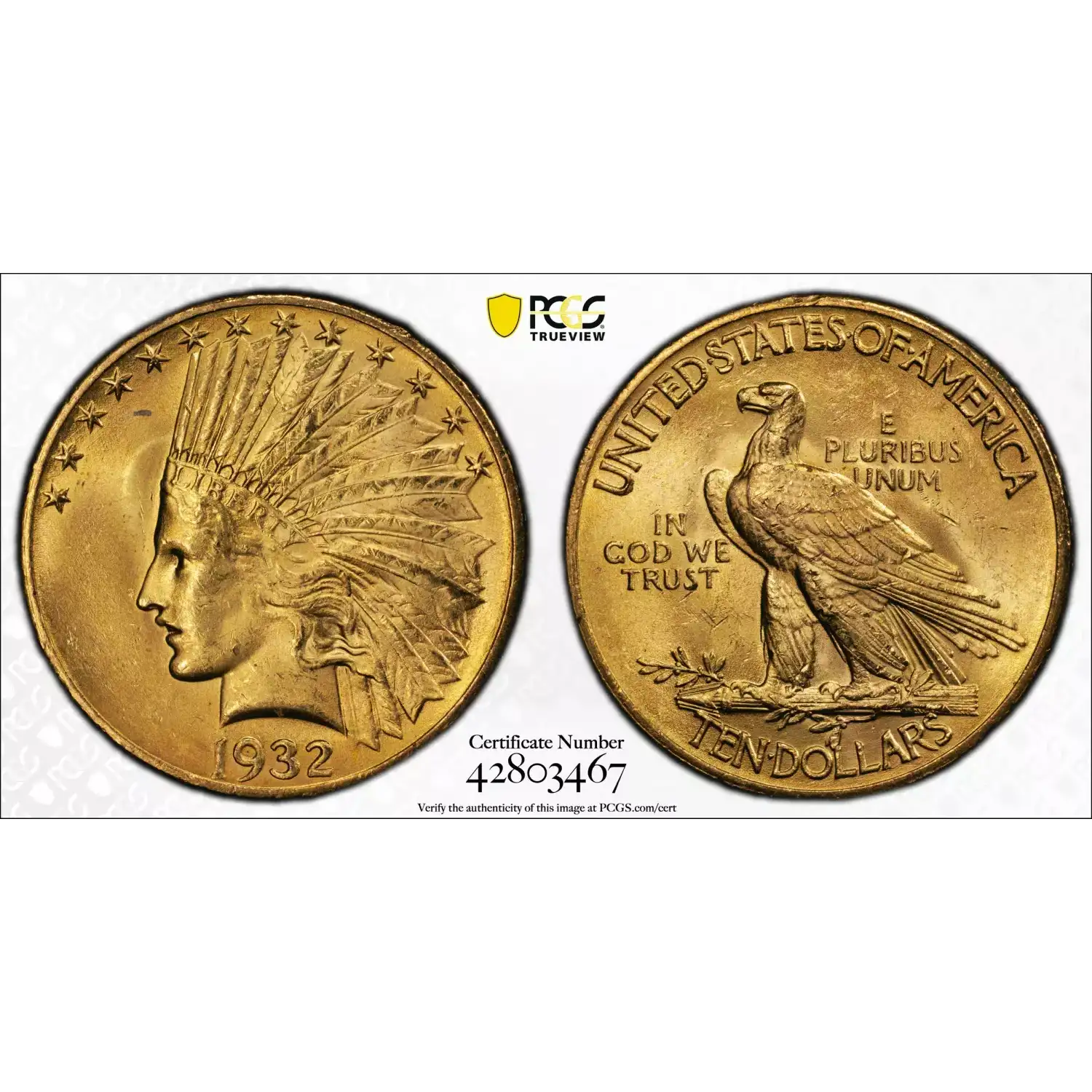 1932 $10 Gold Indian PCGS MS64+ CAC Gold Eagle