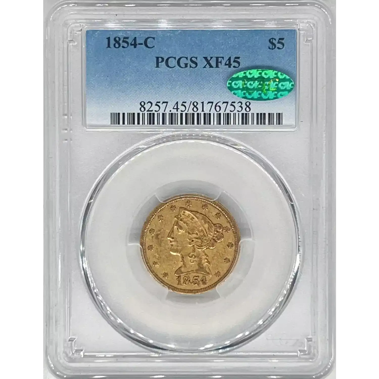 1854-C $5 Gold Liberty PCGS XF45 CAC Gold Half Eagle