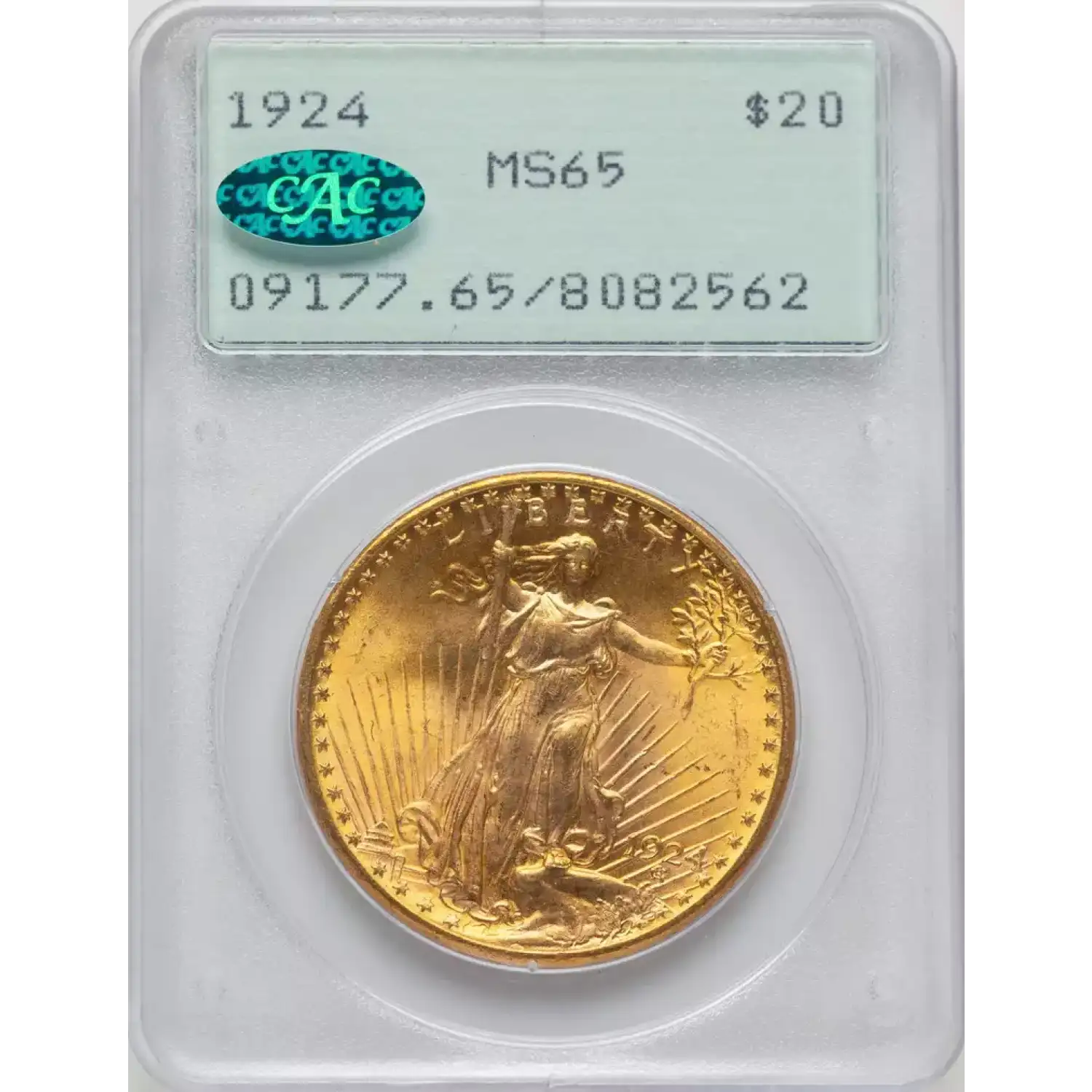 1924 $20 Gold Saint Gaudens PCGS Rattler MS65 CAC Gold Double Eagle