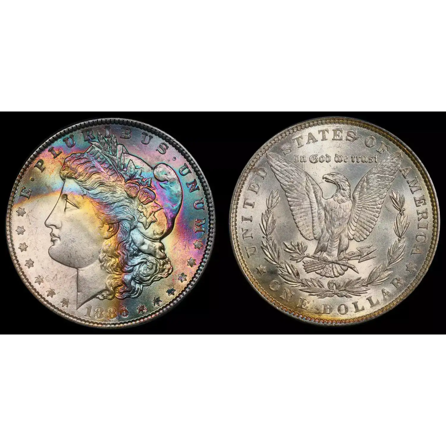 1886 $1 PCGS OGH MS64 CAC Rainbow Toned Morgan Silver Dollar