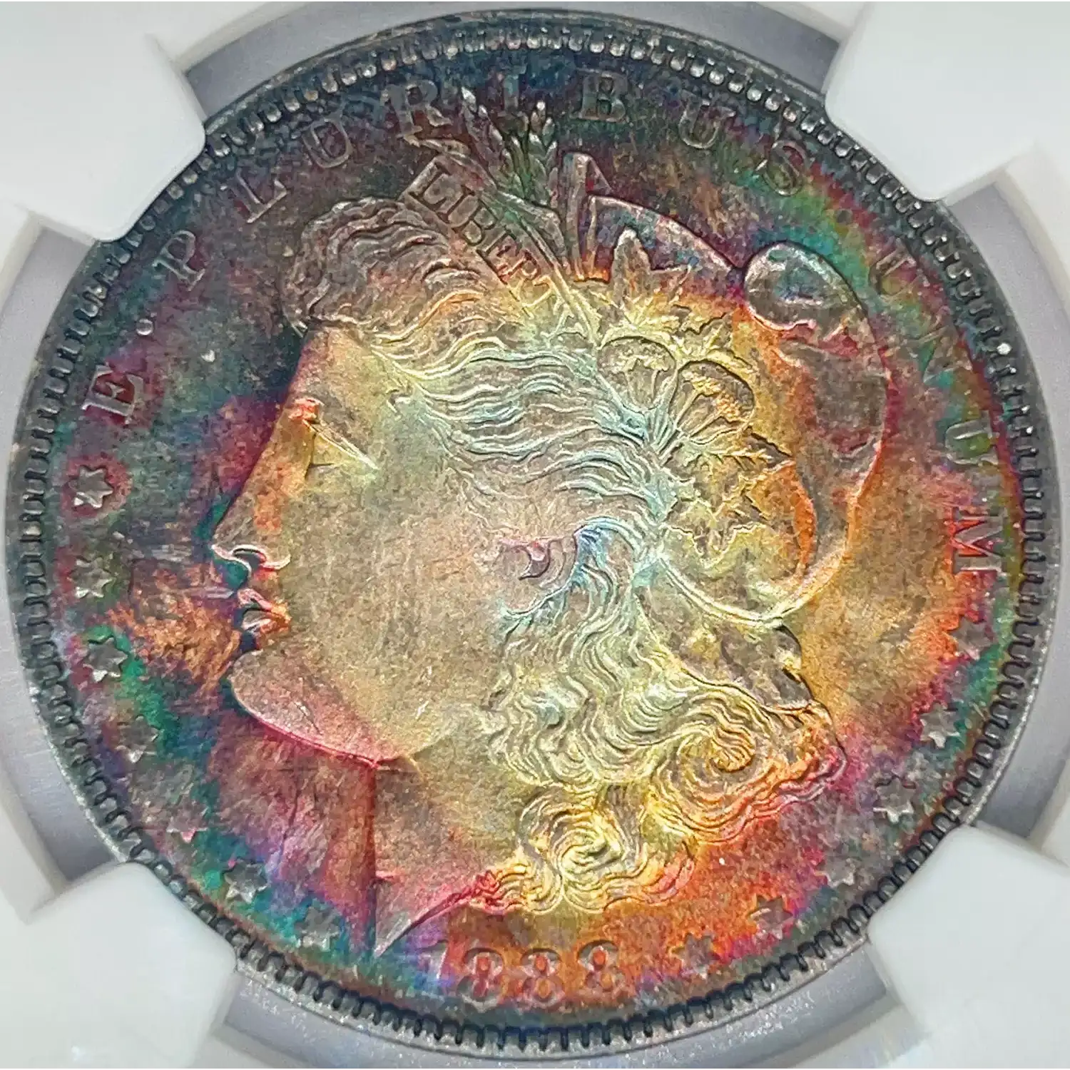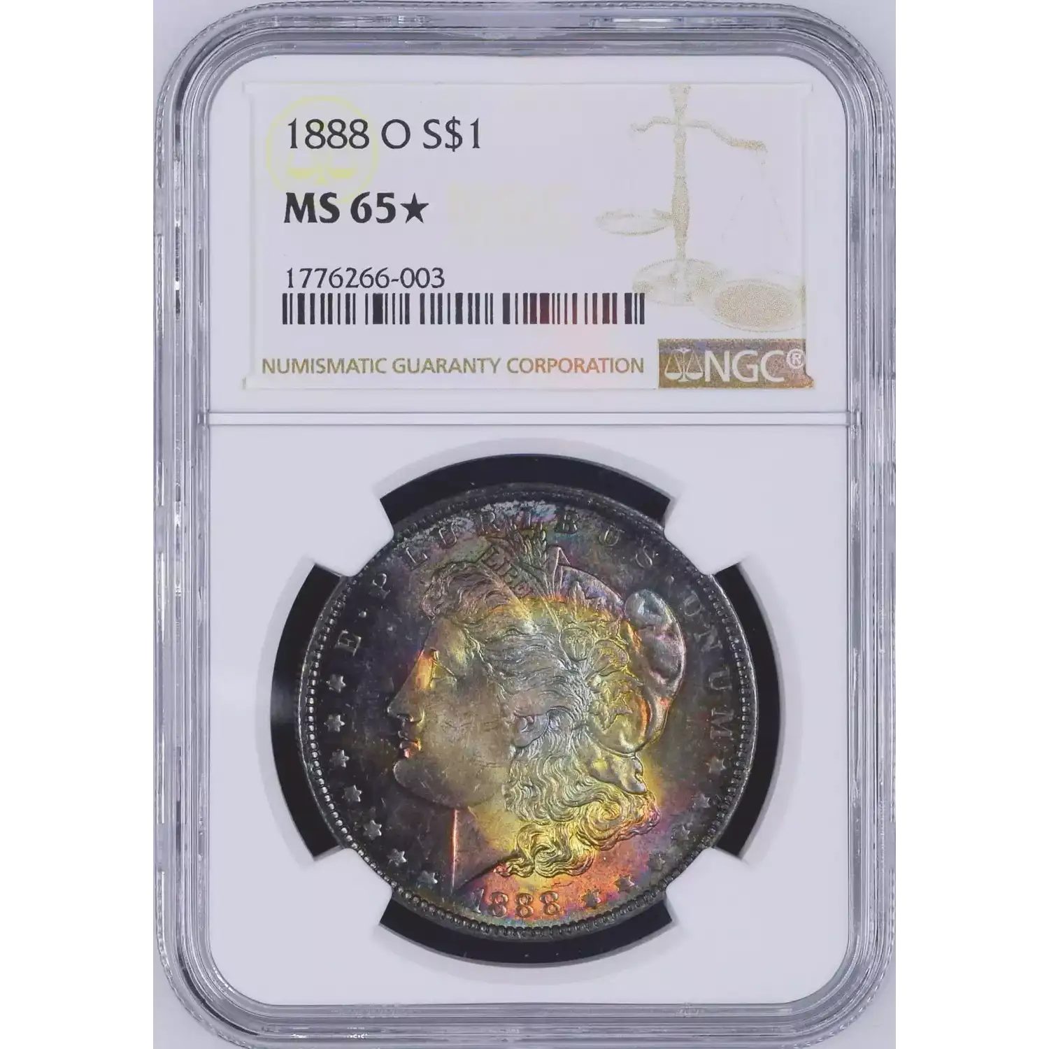 1888-O $1 NGC MS65 Rainbow Toned Morgan Silver Dollar
