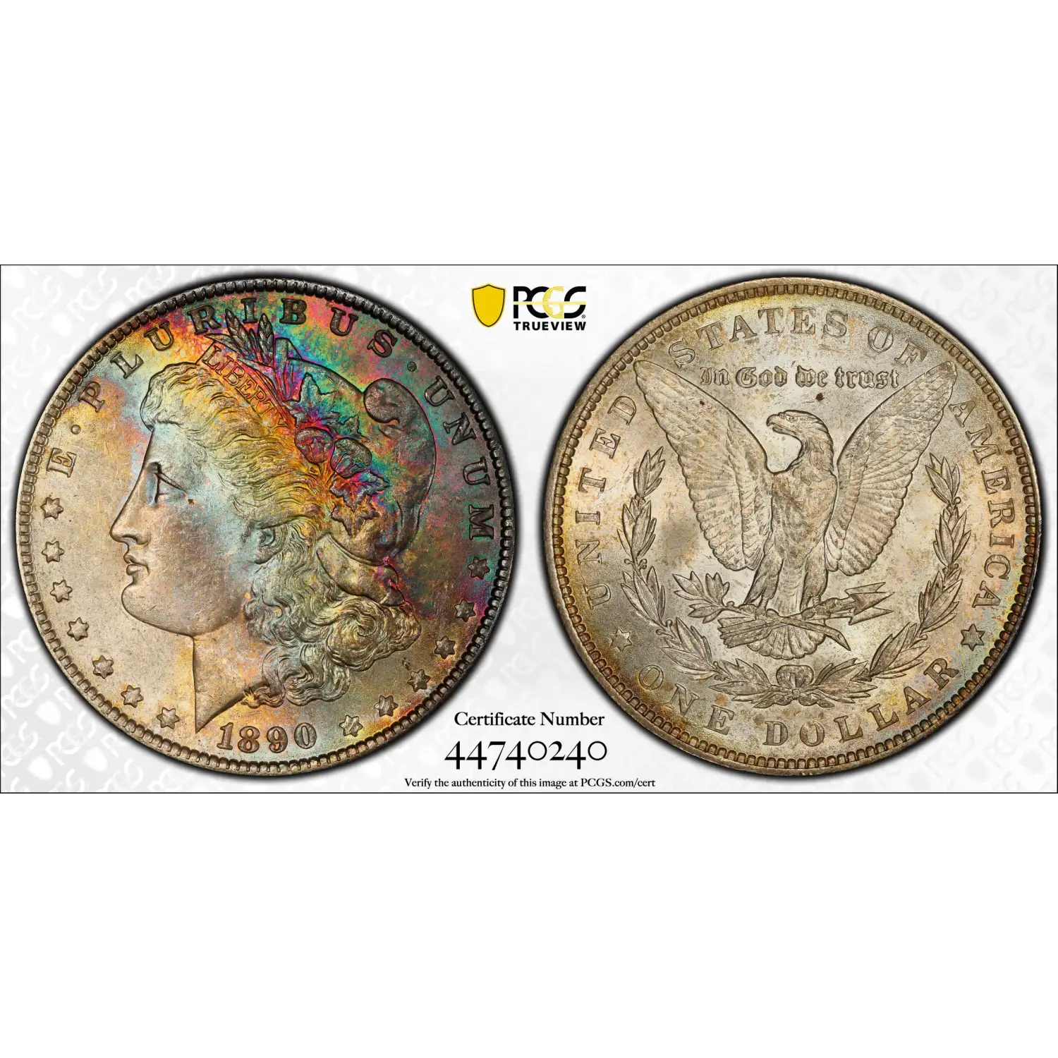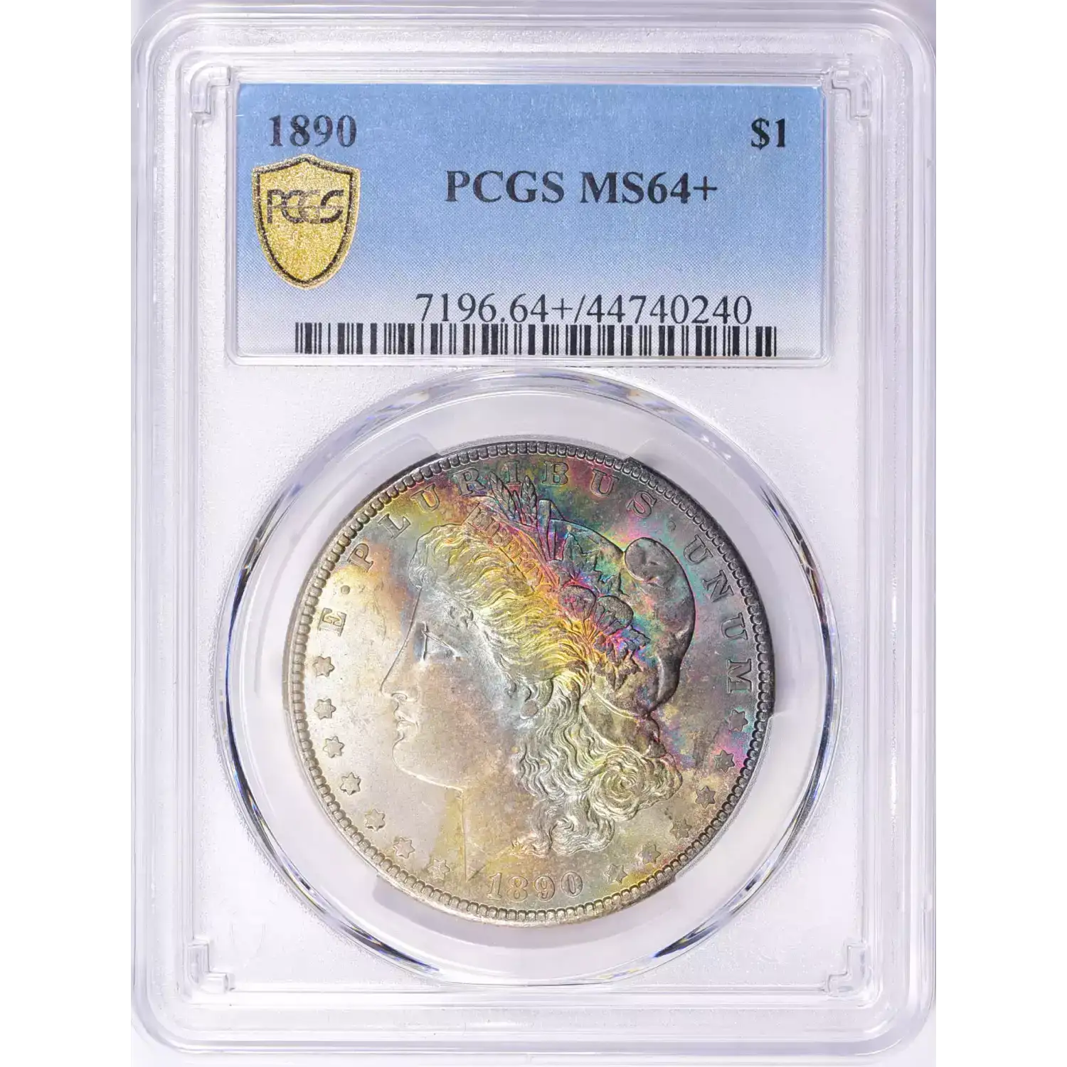 1890 $1 PCGS MS64+ Rainbow Toned Morgan Silver Dollar