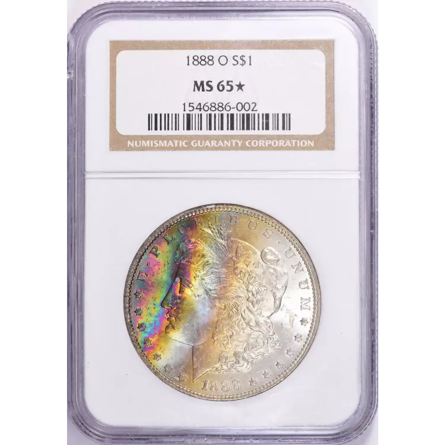 1888-O $1 NGC MS65 ★ Rainbow Toned Morgan Silver Dollar