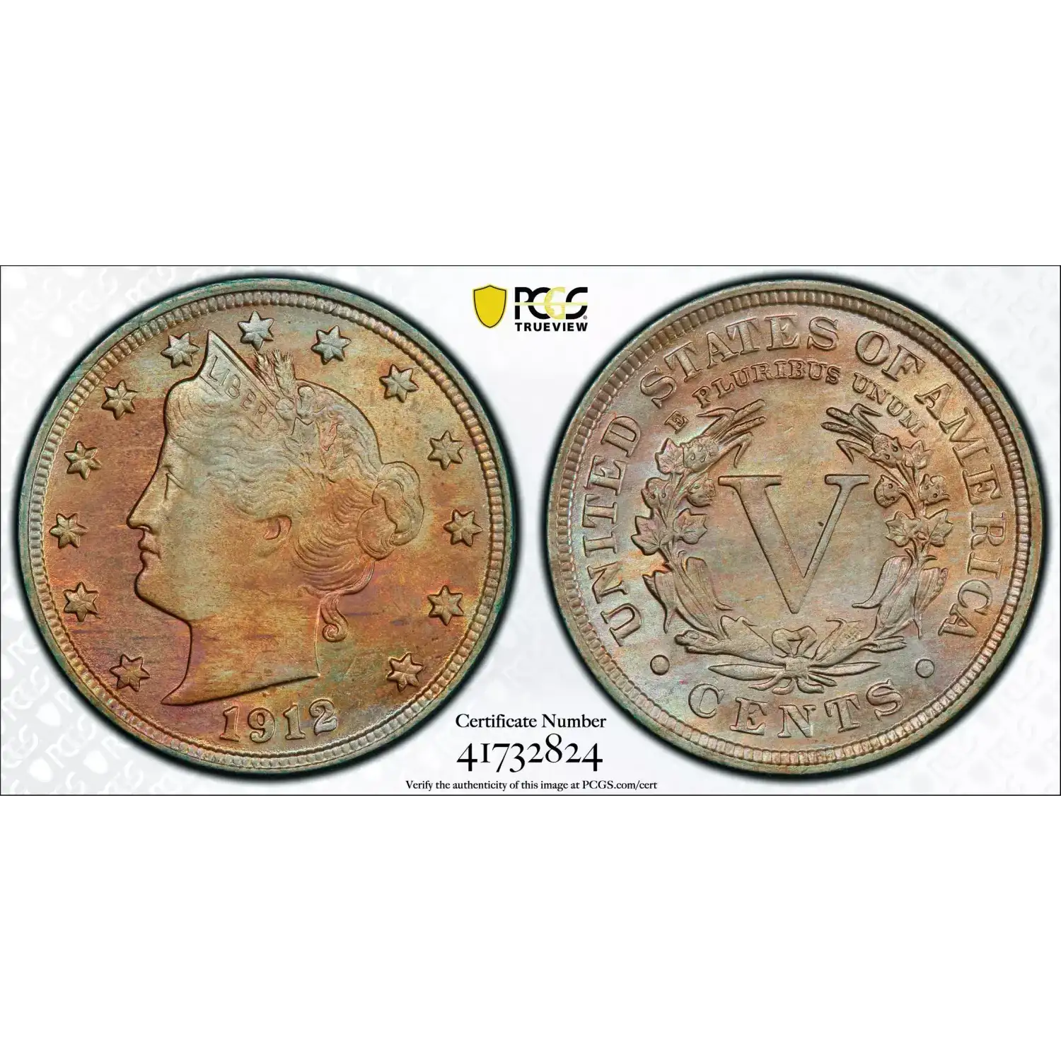 1912 5C PCGS MS64+ Rainbow Toned Liberty V Nickel