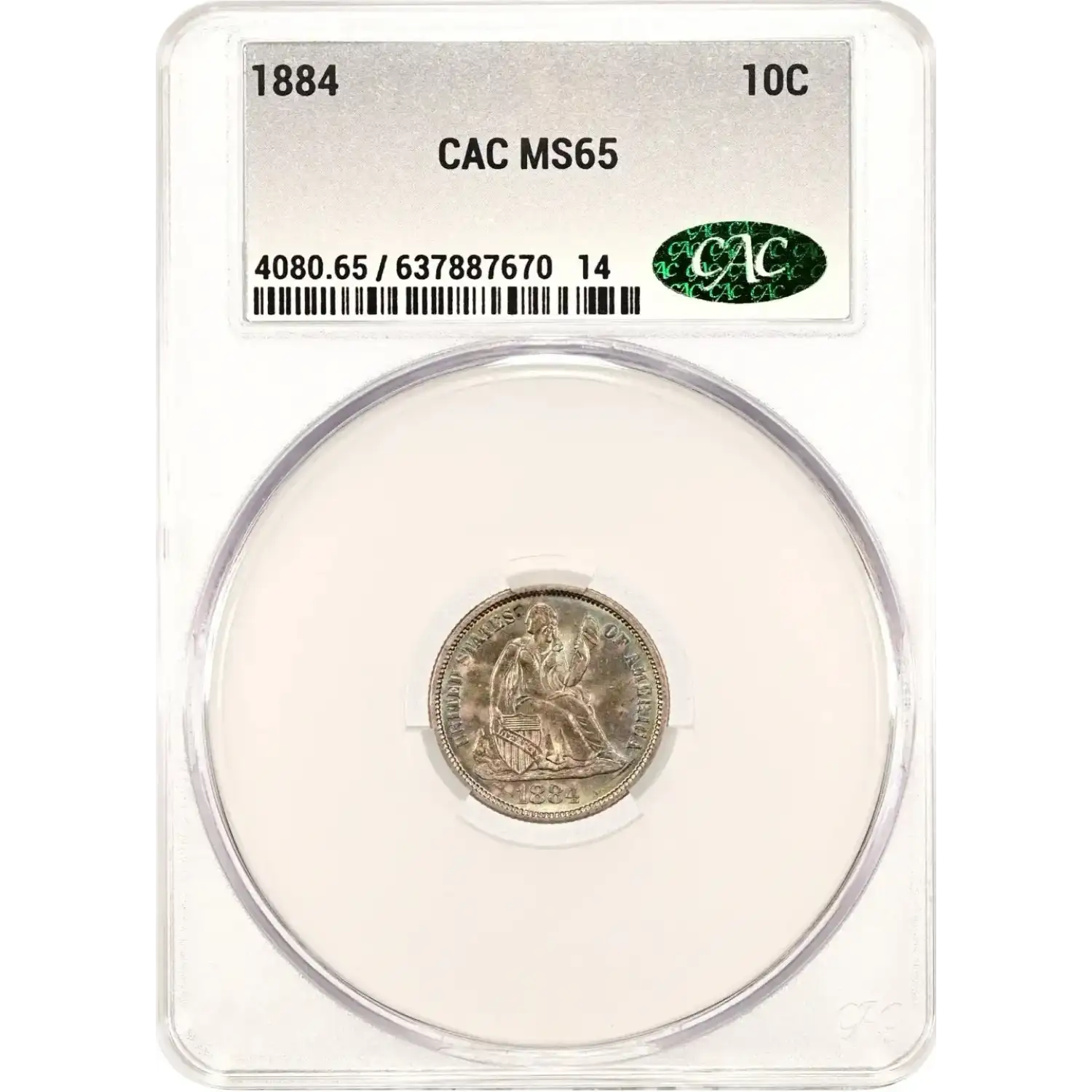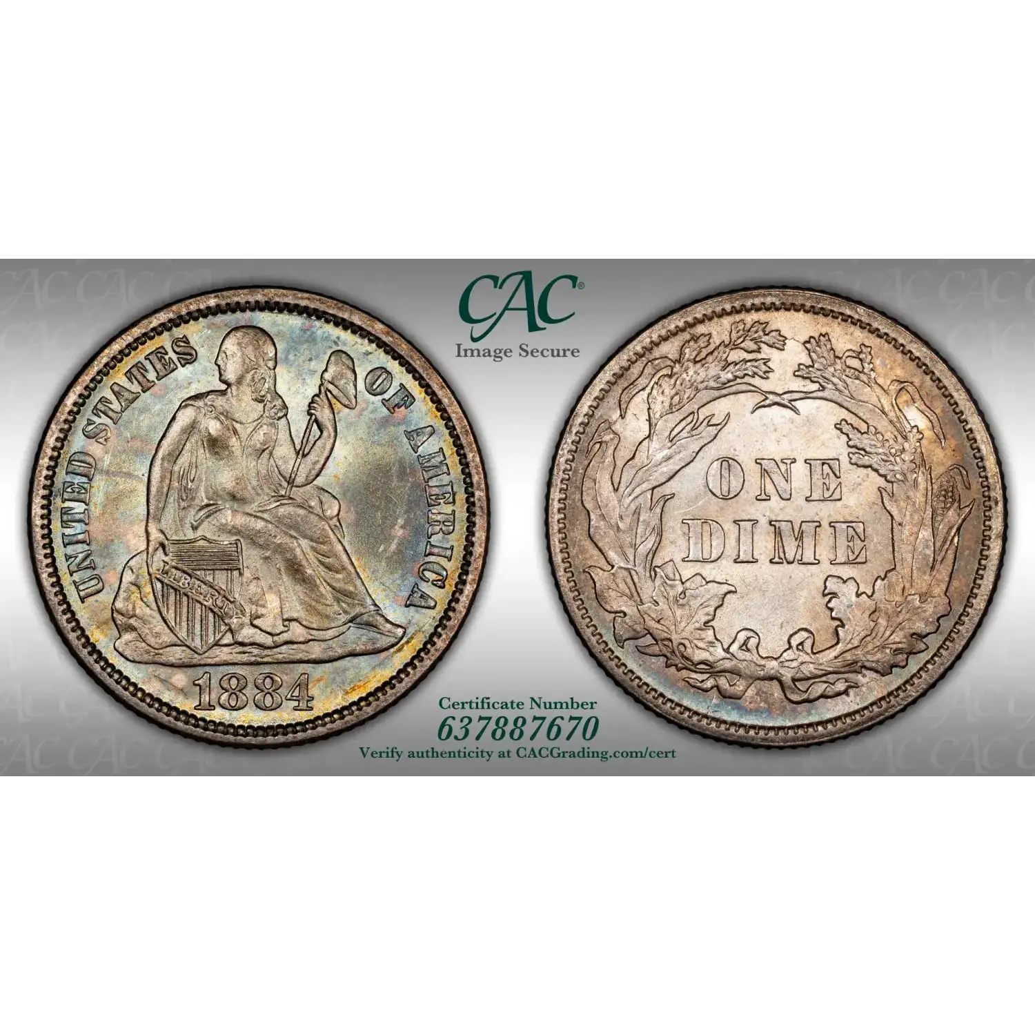 1884 10C CACG MS65 CAC Rainbow Toned Seated Liberty Dime 637887670