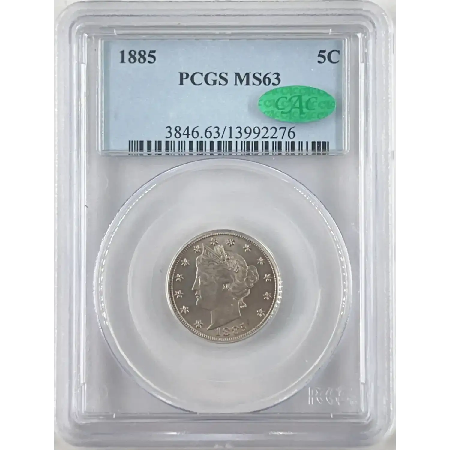 1885 5C PCGS MS63 CAC Liberty V Nickel 13992276