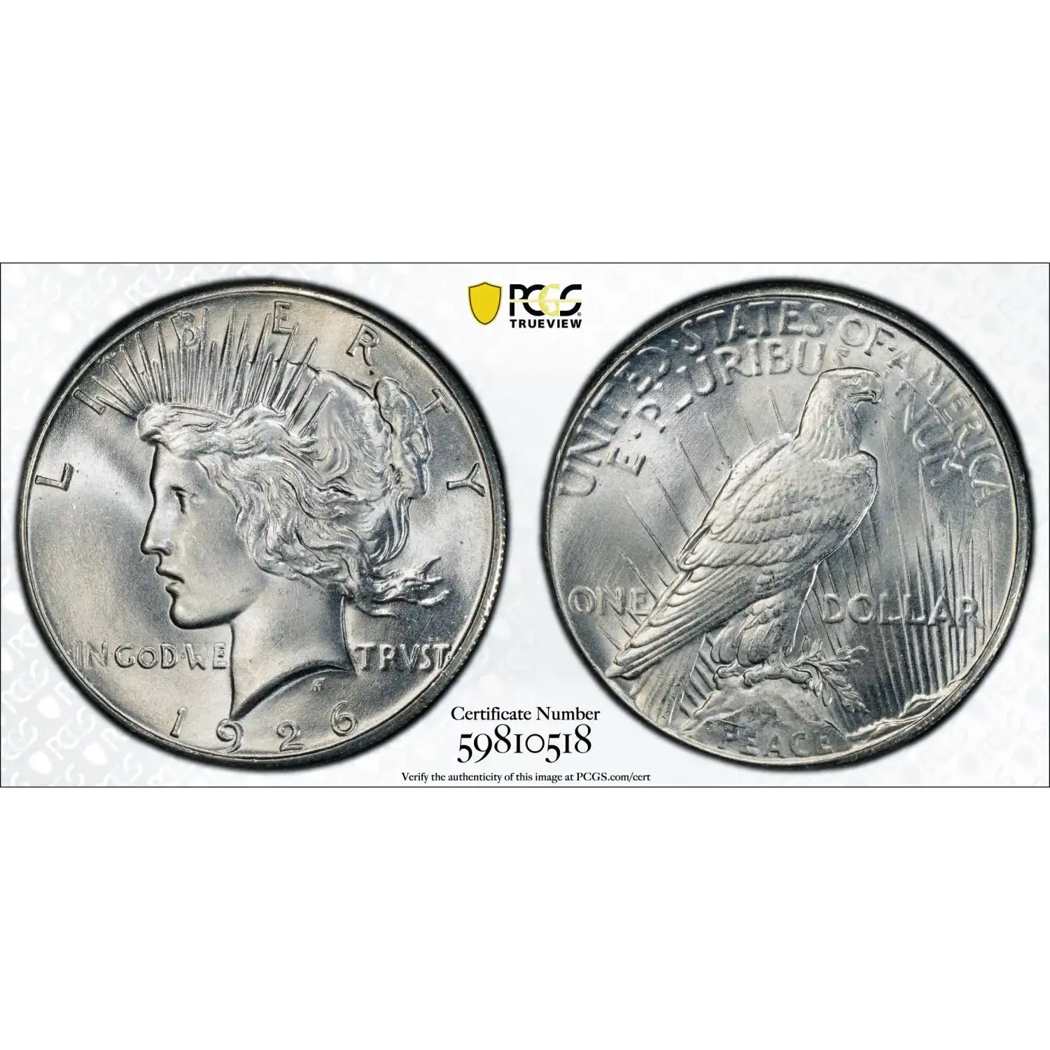 1926 $1 PCGS MS66+ CAC Peace Silver Dollar 59810518