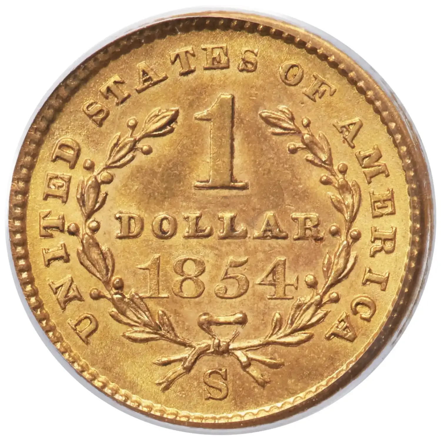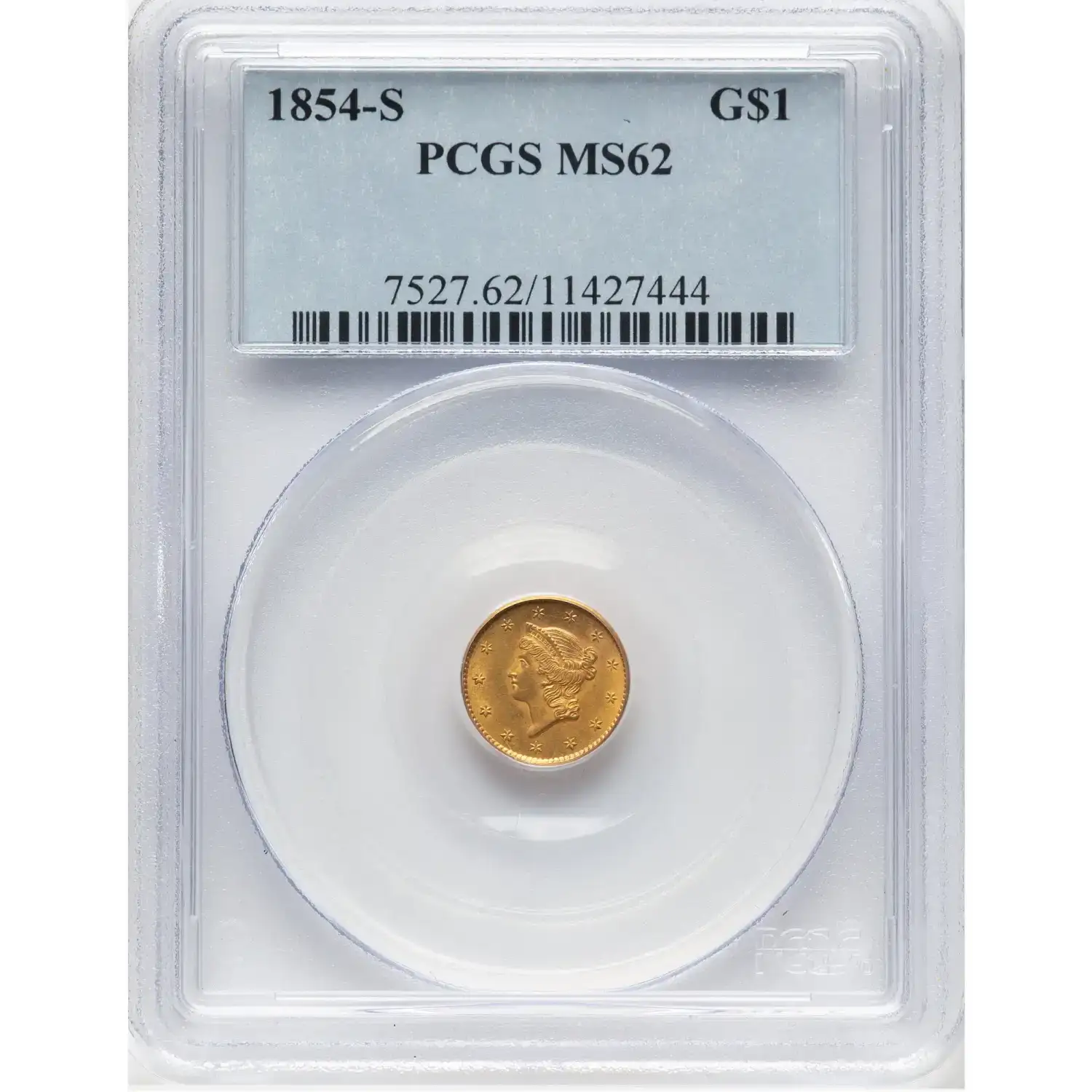 1854-S G$1 Liberty Head PCGS MS62 Gold Dollar