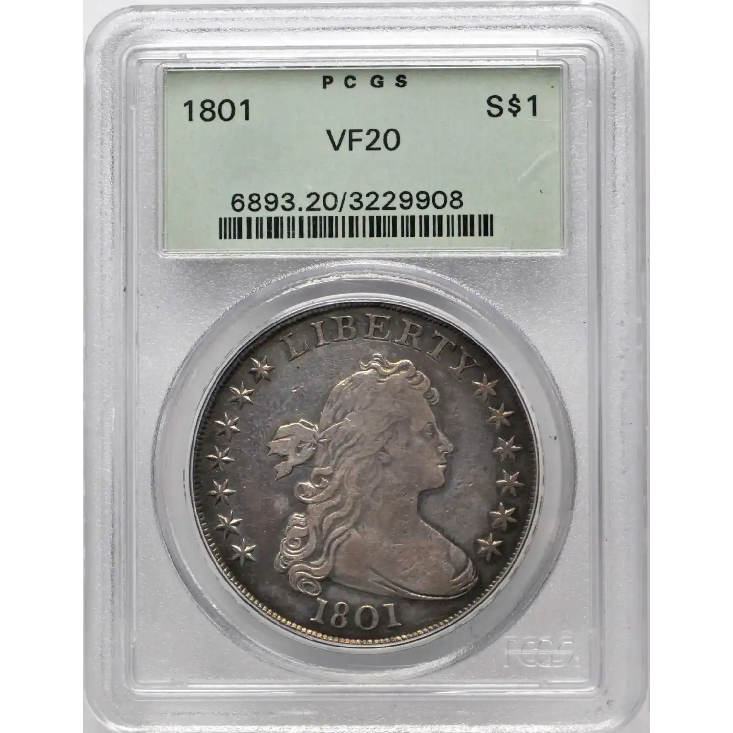 1801 $1 PCGS OGH VF20 Draped Bust Silver Dollar