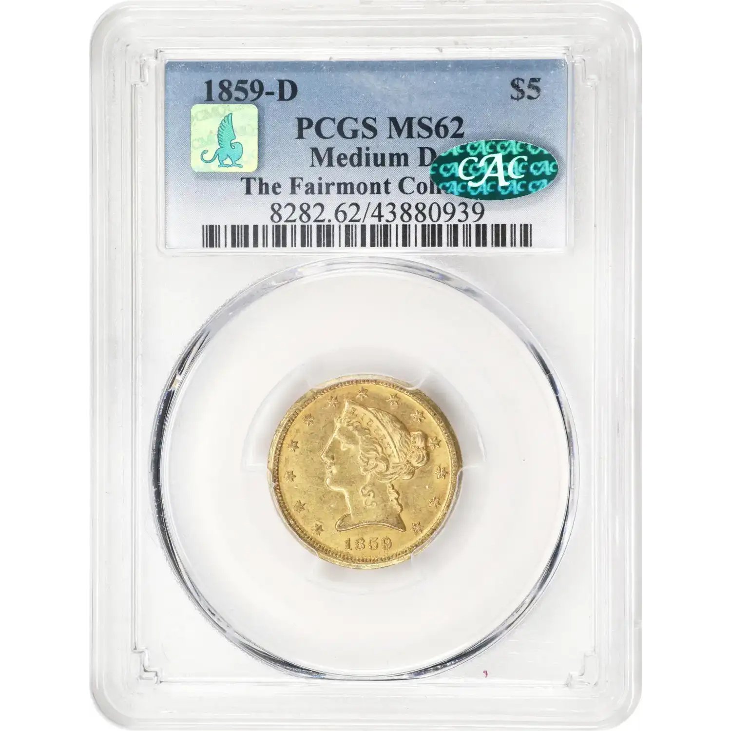 1859-D $5 Gold Liberty PCGS MS62 CAC Gold Half Eagle Medium D 43880939