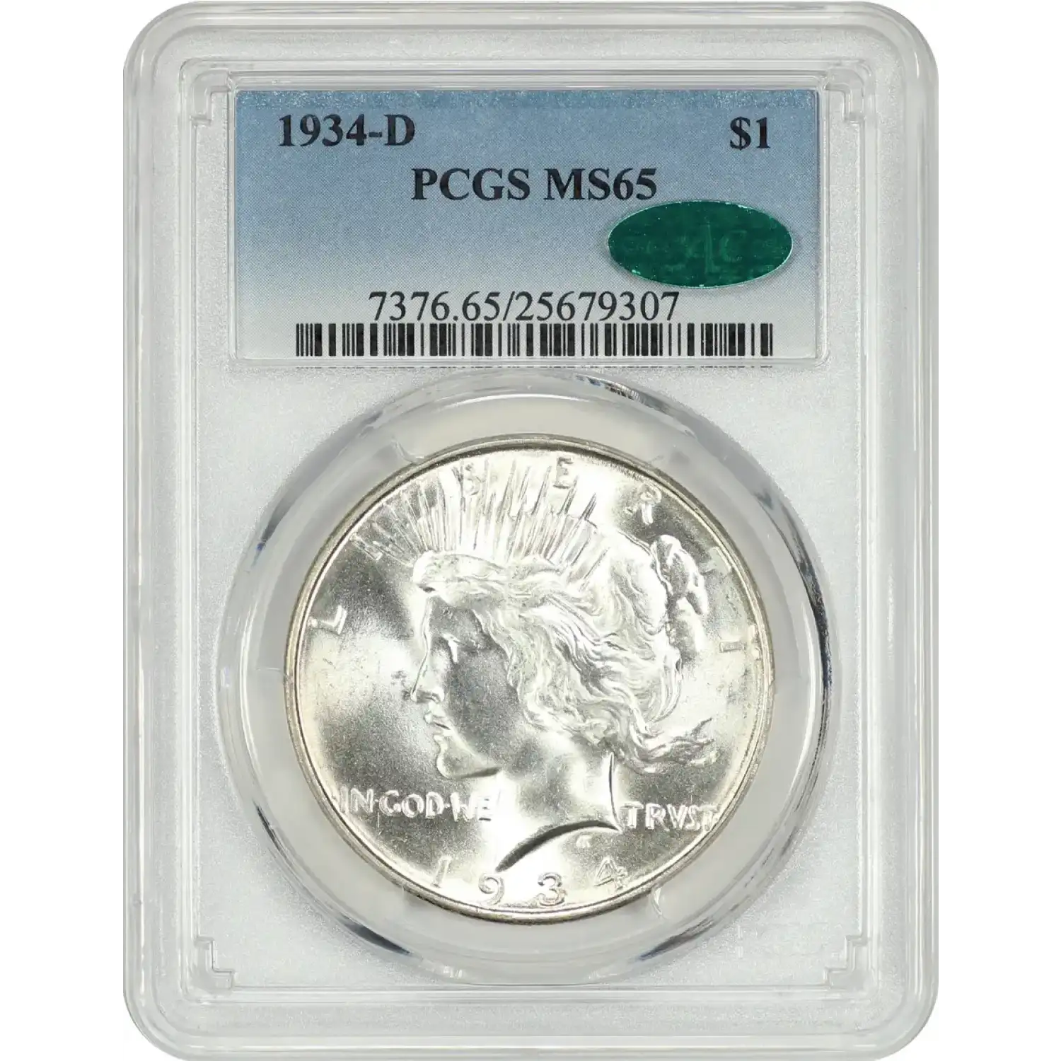 1934-D $1 PCGS MS65 CAC Peace Silver Dollar