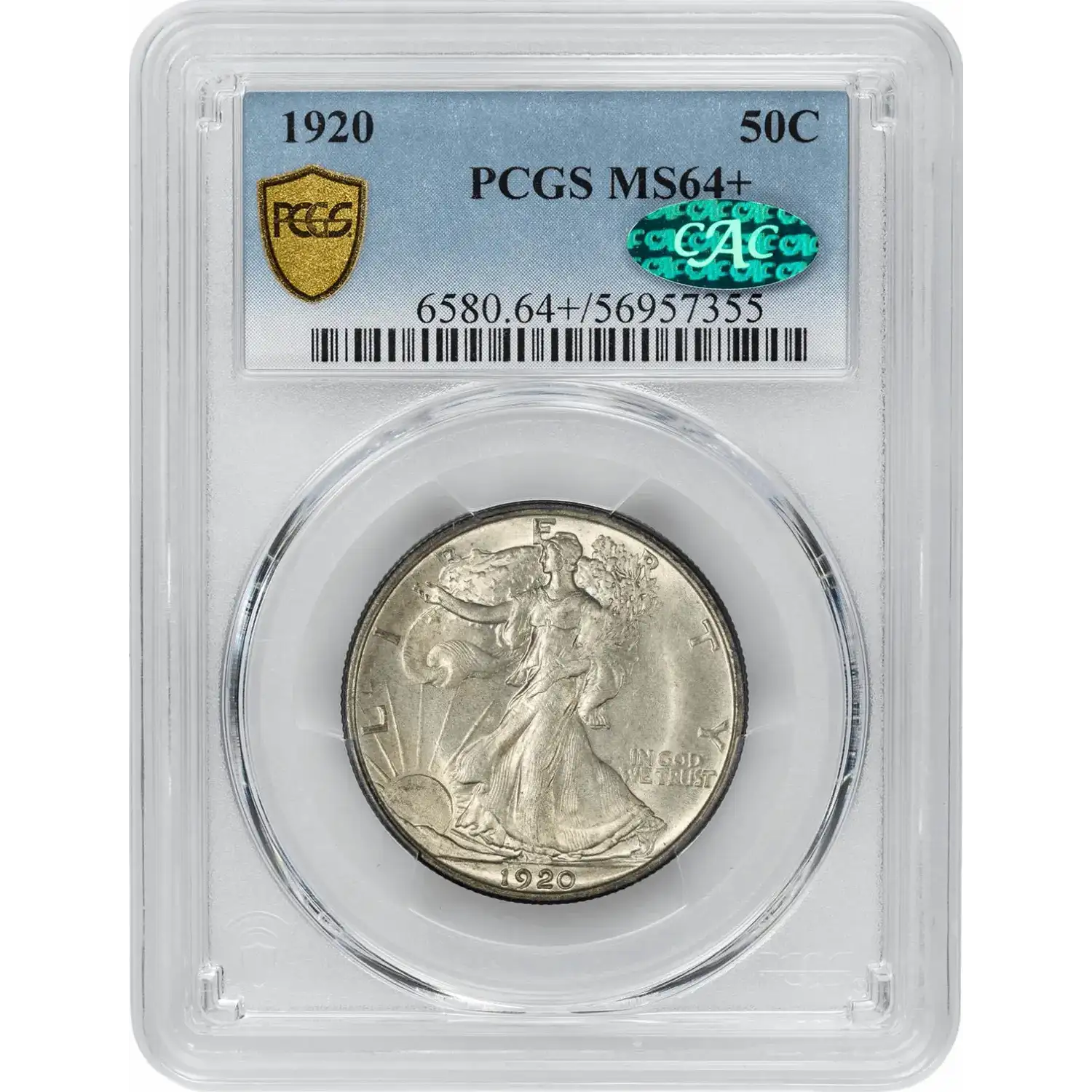 1920 50C PCGS MS64+ CAC Walking Liberty Silver Half Dollar 56957355